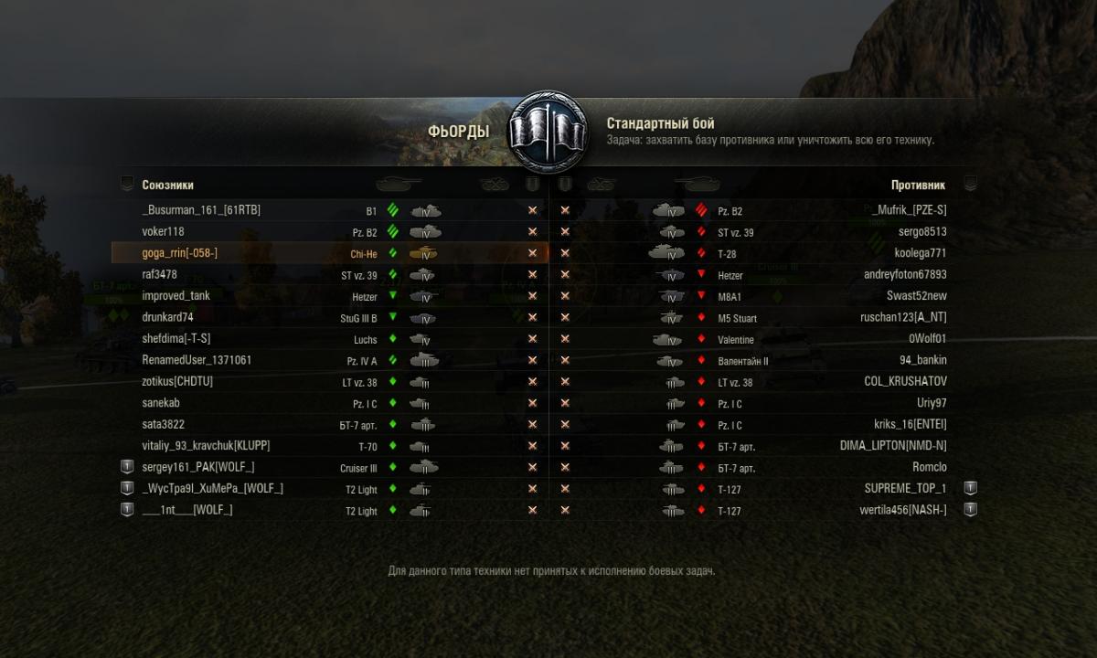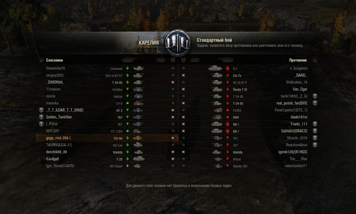 Это вопрос именно РАЗРАБОТЧИКАМ, а не модераторам, которые уже закрывали мою тему. Уважаемые разработчики, кто пишет этот БАЛАНС, поясните на этих примерах как была раскидана техника в этих боях и как взвод лт 2 уровня балансится взводом троек???И в команде противника даже нет двоек??? http://cdn-frm-eu.wargaming.net/wot/ru/uploads/monthly_10_2016/post-21618197-0-12237100-1476654280_thumb.jpg Тупо в команде 5 четверок и меньше топовых шестерок, как и из-за чего??? http://cdn-frm-eu.wargaming.net/wot/ru/uploads/monthly_10_2016/post-21618197-0-75999100-1476654291_thumb.jpg Две четверки балансятся ПТ-5 и САУ-5 http://cdn-frm-eu.wargaming.net/wot/ru/uploads/monthly_10_2016/post-21618197-0-80798900-1476654195_thumb.jpg Это просто сливы без боя... Сто раз вам приводят в пример как за пару месяцев в Кораблях переделали баланс, так что в командах кидает равные корабли(по крайней мере старается кидать равные составы команд). С Уважением.