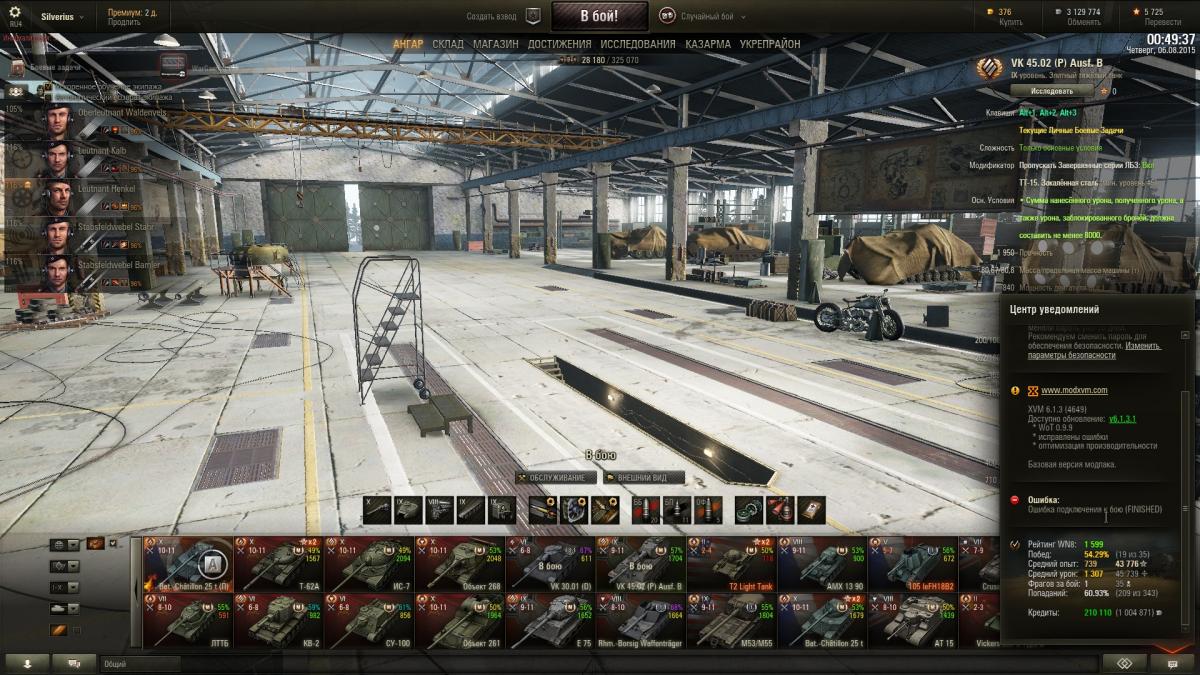 Могу к выше сказанному добавить ещё вот такой скрин. И после этого Разрабы, вы говорите что баланс нормальный???? он нормальный по цифрам уровней 3 - Х, и там и там. Вы думаете только об этом, но абсолютно не думаете об играбильности. Разберу конкретно этот случай. Ваш ответ будет прост 100% - всё хорошо, баланс всё распредилил правильно. А по факту что мы имеем: Во вражеской команде 3 топ техники, и у нас, но у них все арты, у нас есть Т57 хэви. Эта карта для арты не самая удачная, слишком много укрытий и большую часть времени арта просто молчит, в итоге что мы получаем - при максимальном желании их Бат 155 (который противопоставляется т57) за игру сможет разрядить пару барабанов, это если повезёт, итого дамага будет грубо говоря 2500, это при условии, что он будет попадать, что то же корова на 2е сказала ("благодарим" за нерв арты). Т57 же ничем не ограничен, и он может из-за укрытия от арт стрелять, пока снаряды не кончатся, либо пока не убьют, т.е. дамаг потенциальный от него будет явно больше. Как итог - у вражеской команды просто -1 топ танк и всё. И хоть что вы тут не приводите в пример, сути это не изменит. Очень много скринов где у противника на 1н топ танк больше - это якобы погрешность в 10 %. А теперь давайте посмотрим правде в глаза: встанут в перестрелке с одной стороны 2 ис8, с другой: 1) ис4 и ис8, либо 2)ис4 и ис3 (брал танки специально одной нации, что бы было нагляднее). Всё зависит от наличия 8 лвла в балансе, и погрешности. в 1м случае по сумме лвлов будет погрешность ВБР 10%, во 2м погрешности не будет. а теперь разберём каждое противостояние 1. команда А (2 ис8) хп - 1700*2 = 3400, дамаг за один раз 440*2 = 880. команда Б (Ис 4 и ис 8) хп - 2500+1700= 4200, дамаг за один раз 440*2 = 880. победитель в 90% будет команда Б. 2. команда А (2 ис8) хп - 1700*2 = 3400, дамаг за один раз 440*2 = 880. команда Б (Ис 4 и ис 3) хп - 2500+1450= 3950, дамаг за один раз 440+390 = 830. для того что бы уничтожить команду А понадобится 4,09 высрелов (расчёт сразу дамаг от 2х танков) для того что бы уничтожить команду Б понадобится 4,49высрелов (расчёт сразу дамаг от 2х танков). Это всё грубая математика, а ещё + учитывать надо то, что ис4 далеко не самый пробиваемый противник, в отличае ис 8. А ёще за место ис4 может попасться британская пт 10 лвла, и тогда шансы у тт9 стремительно падают к нулю. И после этого вы хотите нас уверить что баланс правильный???????!!!!! Он правильный в плане цифр, но не равности сетапов. Если в одной команде будет 10 тт Х, а в другой 10 пт Х, то с большим преимуществом будет побеждать команда ПТ. и тут всё математически просто объясняется: что бы убить пт 10 лвла, нужно в лучшем случае 5 пробитий от ТТ, из 10 выстрелов, по фокусу должны разрядиться 5! ровно половина!, а что бы убить тт10, пт надо от 1го!(Брит фр) - до 3х выстрелов!, вот и считаем. за один залп тт убъют максимум 2 пт врага, а пт от 3 до 10, а в среднем около 5 тт. Вот вам и баланс. Уважаемые разработчики, не забывайте пожалуйста об играбильности и равности сетапов, помните, что пт - это противотанковое сау, которое и должно убивать тт за 1 выстрел, и приравнивать их в одном бою - это мягко говоря не совсем правильно. Если разница в 1-2 пт ещё не так сильно ощутима, то когда перевес у одной команды от 3 и более топовых пт сау, да и ещё больше на один танк 10 лвла изначально - об правильности баланса может говорить только ВБР с его 10% погрешности, но не здравый смысл.