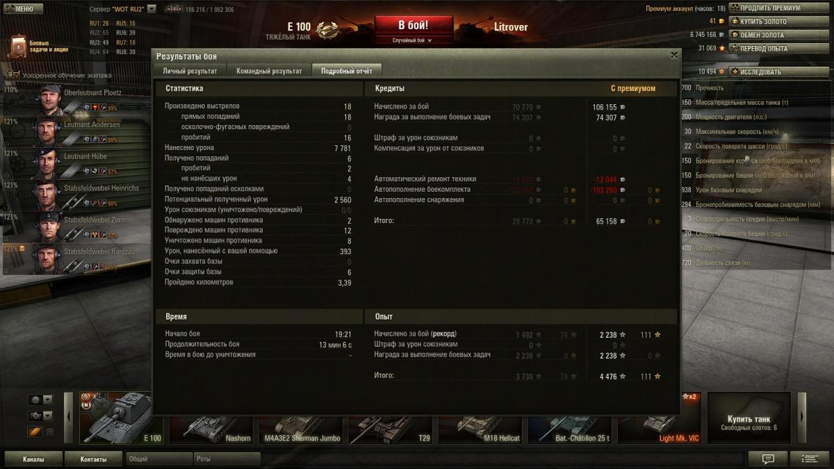 После нескольких неудачных боев удалось затащить вместе с союзником на 268. В какой-то момент остались против семерых. Особенно попадания понравились - 18 из 18:)