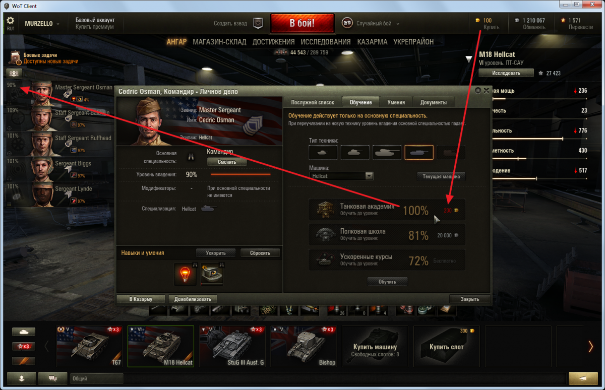 Пересадил обученный экипаж до 100% (основной специальности) с Т67 на Hellcat, и выбрал переобучение каждого до 80% по 20.000 серебра. Позже, решил переобучить хотя бы Командира в Танковой академии до 100% Итог: Со счета списалось 200 золота но, как у него было 90% умения "основной специальности" - так и осталось. То есть, после списания - ВООБЩЕ НИЧЕГО НЕ ПРОИЗОШЛО. Вопрос к знатокам, в чем прикол??? И как вернуть свои 200 золота назад? http://cdn-frm-eu.wargaming.net/wot/ru/uploads/monthly_09_2016/post-21985253-0-57202500-1472833018_thumb.png P.S. Параллельно подал заявку в Центр поддержки, жду ответа от разработчиков.