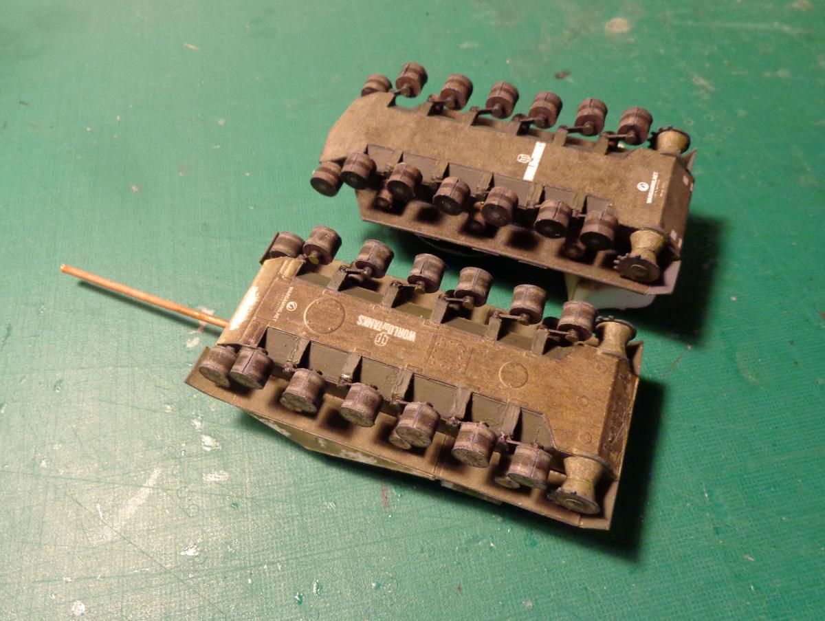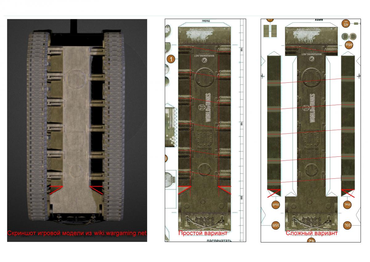 На модели правые торсионы оказались задвинутыми назад. Хотя должны были выдвинуться относительно левых вперёд. Только в сложной версии сборки, как я понял. Т.е. они не совпали с рисунком цельного днища самоходки из простой версии. Получился бОльший, в сравнении с остальными, промежуток между первым и вторым опорными катками правой стороны. http://cdn-frm-eu.wargaming.net/wot/ru/uploads/monthly_03_2017/post-2213114-0-87626500-1488346254_thumb.jpg