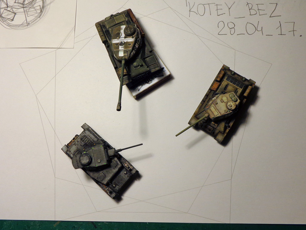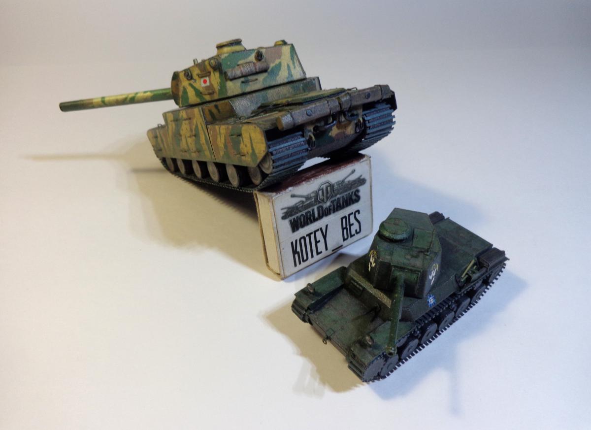 http://cdn-frm-eu.wargaming.net/wot/ru/uploads/monthly_12_2016/post-2213114-0-02453200-1482929235_thumb.jpg http://cdn-frm-eu.wargaming.net/wot/ru/uploads/monthly_12_2016/post-2213114-0-73684300-1482929242_thumb.jpg http://cdn-frm-eu.wargaming.net/wot/ru/uploads/monthly_12_2016/post-2213114-0-92026600-1482929277_thumb.jpg http://cdn-frm-eu.wargaming.net/wot/ru/uploads/monthly_12_2016/post-2213114-0-48103800-1482929291_thumb.jpg http://cdn-frm-eu.wargaming.net/wot/ru/uploads/monthly_12_2016/post-2213114-0-42952600-1482929300_thumb.jpg http://cdn-frm-eu.wargaming.net/wot/ru/uploads/monthly_12_2016/post-2213114-0-23905300-1482929432_thumb.jpg Облюбовал крупнейшую местную машину для определения собственной границы деталировки в любимом "слепом" масштабе. Как ориентир для следующих построек. Собирались модели в паре. Т.к. других японских проектов на полку до них не помещалось, а одному Type 5 было бы скучно. Потребовалась пара месяцев вечеров. На Chi-Nu репетировал гусеничную полосатость (помню, про модель комментировали "он не поедет, у него гусеница с ведущей звездой не сцеплены! Так вот мой поедет :Ь) Стволы, для меня традиционно, вышкурены из пластмассовых кругляшей, фары Heavy - из бусин, использована разнокалиберная проволока. Краска - акрил от "Звезды". Охрана коробка и батарейки (для масштабности): http://cdn-frm-eu.wargaming.net/wot/ru/uploads/monthly_12_2016/post-2213114-0-52931900-1482929795_thumb.jpg http://cdn-frm-eu.wargaming.net/wot/ru/uploads/monthly_12_2016/post-2213114-0-59122800-1482929802_thumb.jpg http://cdn-frm-eu.wargaming.net/wot/ru/uploads/monthly_12_2016/post-2213114-0-75704000-1482929821_thumb.jpg http://cdn-frm-eu.wargaming.net/wot/ru/uploads/monthly_12_2016/post-2213114-0-57878500-1482929835_thumb.jpg Пара фотографий во время сборки и небезызвестные фигурки экипажа: http://cdn-frm-eu.wargaming.net/wot/ru/uploads/monthly_12_2016/post-2213114-0-55591200-1482930068_thumb.jpg http://cdn-frm-eu.wargaming.net/wot/ru/uploads/monthly_12_2016/post-2213114-0-73192900-1482930079_thumb.jpg http://cdn-frm-eu.wargaming.net/wot/ru/uploads/monthly_12_2016/post-2213114-0-69413600-1482930086_thumb.jpg http://cdn-frm-eu.wargaming.net/wot/ru/uploads/monthly_12_2016/post-2213114-0-12747900-1482930093_thumb.jpg Очередное спасибо разработчикам - собираются модели со смаком! Желаю всем масштабного Нового Года, ровных стыков и бессмертных инструментов! (Ура, я успел до конца декабря!)