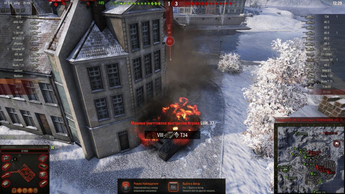 Собственно все на скриншоте, во всяком случае, как мне кажется я за зданием, но сперва получаю от ИС-3 (заскринить не успел), затем от Т-34.