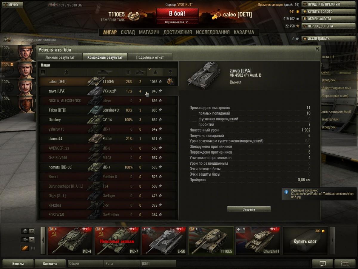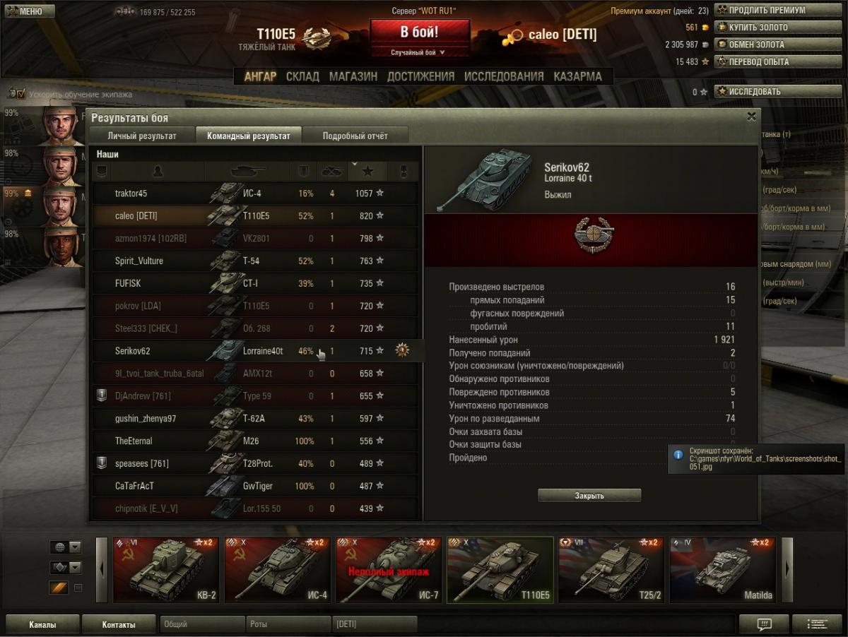 Победа! Бой: Эрленберг 3 января 2013 г. 18:10:38 Танк: Comet Получено опыта: 2 457 Получено кредитов: 57 562 Достижения в бою: «Воин», «Снайпер», «Бронебойщик», Знак класcности «Мастер» Одновременно качаю Т20 и Комету. танки приблизительно равны , если учесть что на т20 ребята с "супер перша". А так комета по приятнее главное успеть переключиться на голду.