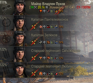 В общем практика показывает бесполезность маскировки, что и так, в принципе, было ясно и всё пущено на прокачку обзора. Тактика отработана... Что-то типа игры на амер. Т34 или Т30. Бережём низ за дружественными танками или укрытием, подставляем башню, если придётся. Иначе на Т103 ничего не наиграется путного... не классическая это ПТ и нечего её мучить игрой из кустов на задворках. Экипаж переделаю специально для 103 - без маскировки, либо новый обучу, так как фармит просто отлично, застаиваться не будет в отличие от моей невезучей СУ-130ПМ.