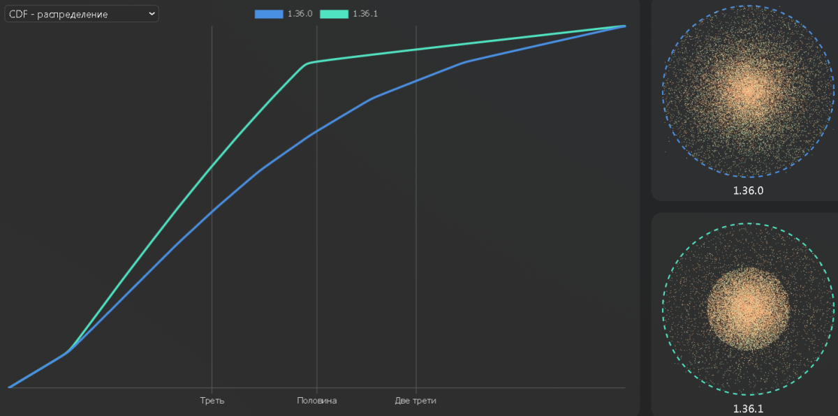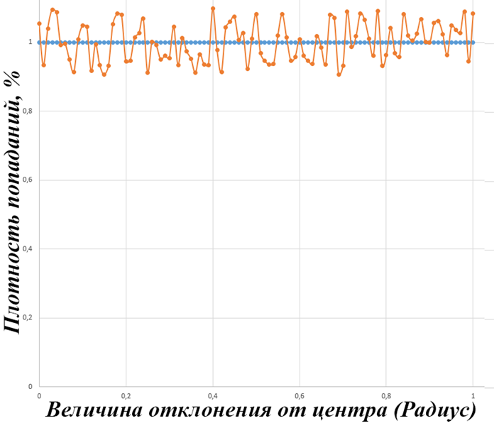 Уважаемый Rhot у меня всё в порядке, и вам того же желаю. А вы видимо не полностью всё прочитали и проанализировали (возможно не прошли по ссылке и не изучили график со статистикой попаданий). Та реализация распределения, которая была в патче 1.36.1 и которая как вы пишете вас устраивала, давала проседание по попаданиям вблизи центра, т.е. в круг примерно до 0,1 радиуса снаряды летели в 2,5 раза реже чем должны были бы при нормальном распределении. Для наглядности посмотрите как выглядит график "нормального распределения" - и сравните с собранной статистикой попаданий.https://forum-mt-prod.lesta.ru/monthly_09_2025/post-22519702-0-12626300-1758990899.png