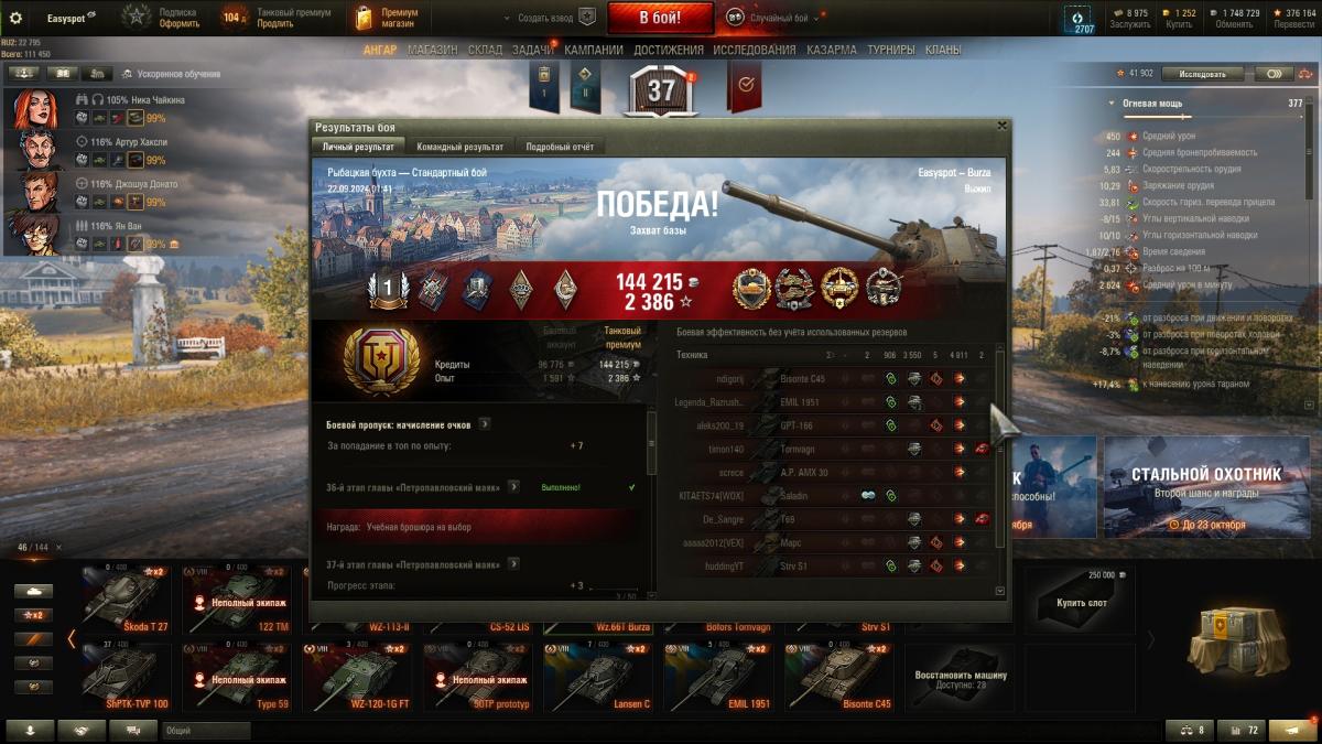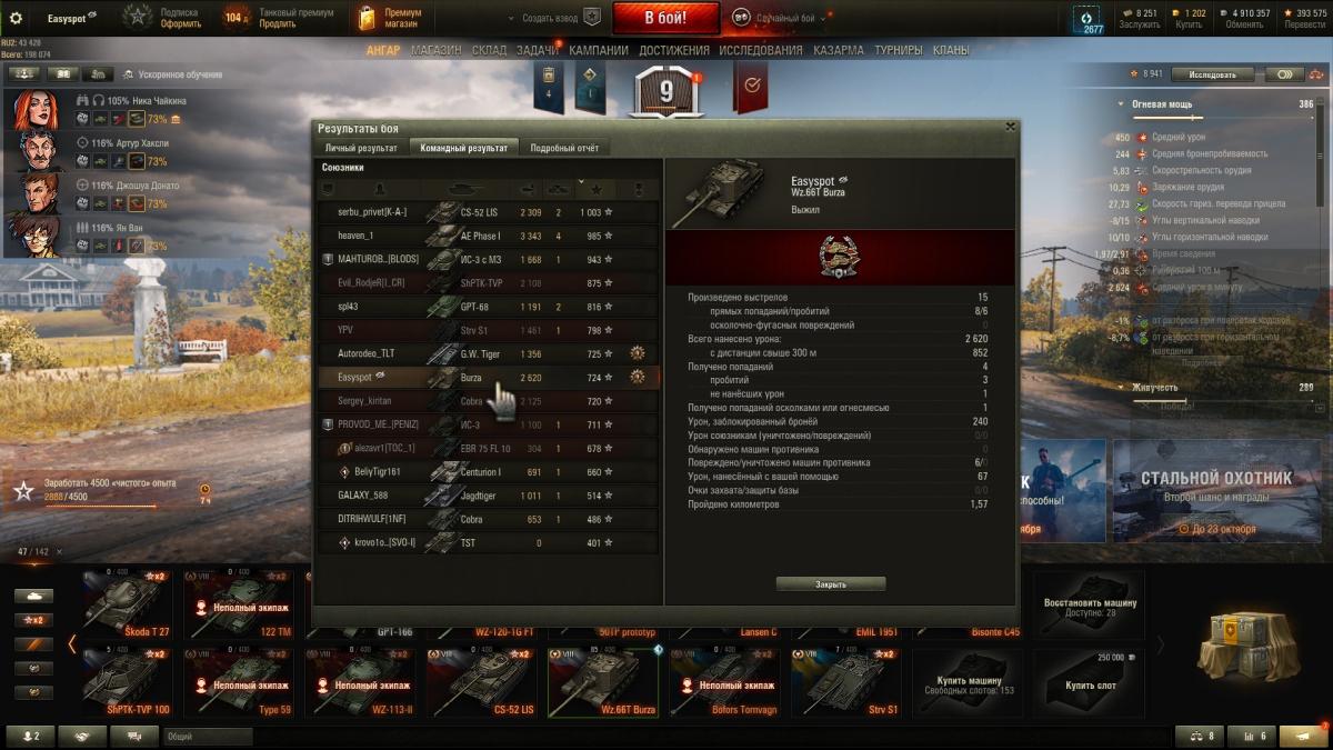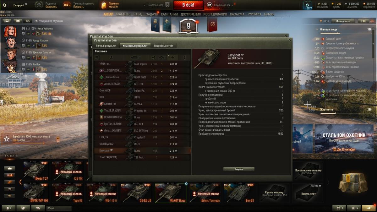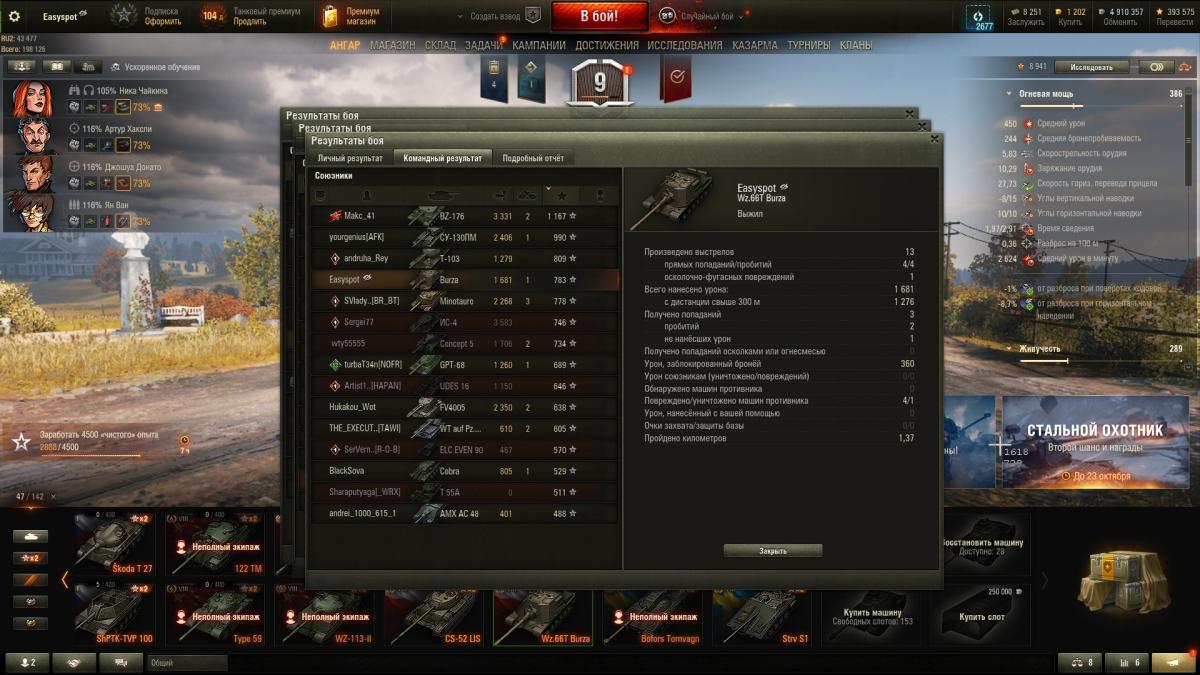 Вот это меня в ней бесит неимоверно. 40 секунд стрелять по кд, пытаясь попасть в стоящий на месте танк? Легко. Пытаться выцелить аналогичной буре нлд 5-6 раз попадая в землю? Хахах. Не пробивать туда где пробивается светляками и не попадать туда куда попадается даже ГПТ 166? Да каждый бой, ***. Один выстрел из 3 летит в круг сведения. 60% примерно шанс пробития, урон - ну как повезет, я как то 35- гораздо чаще вижу чем 4--, а 500 и выше и не видел ни разу, хотя знаю что может, их сейчас много, по мне постоянно так прилетает. 4 последних боя на скрине. Тот который турбо - это клинч с М4 импрувед. 5 выстрелов, 1 промах, 1 пробитие. Промах в клинче, Карл! Тому шакалу который придумал при приобретении любого танка игроком сразу ему случайно назначать постоянный штраф или бонус к характеристикам, я желаю в жизни всего самого нехорошего вплоть до рака тестикул 4 стадии.