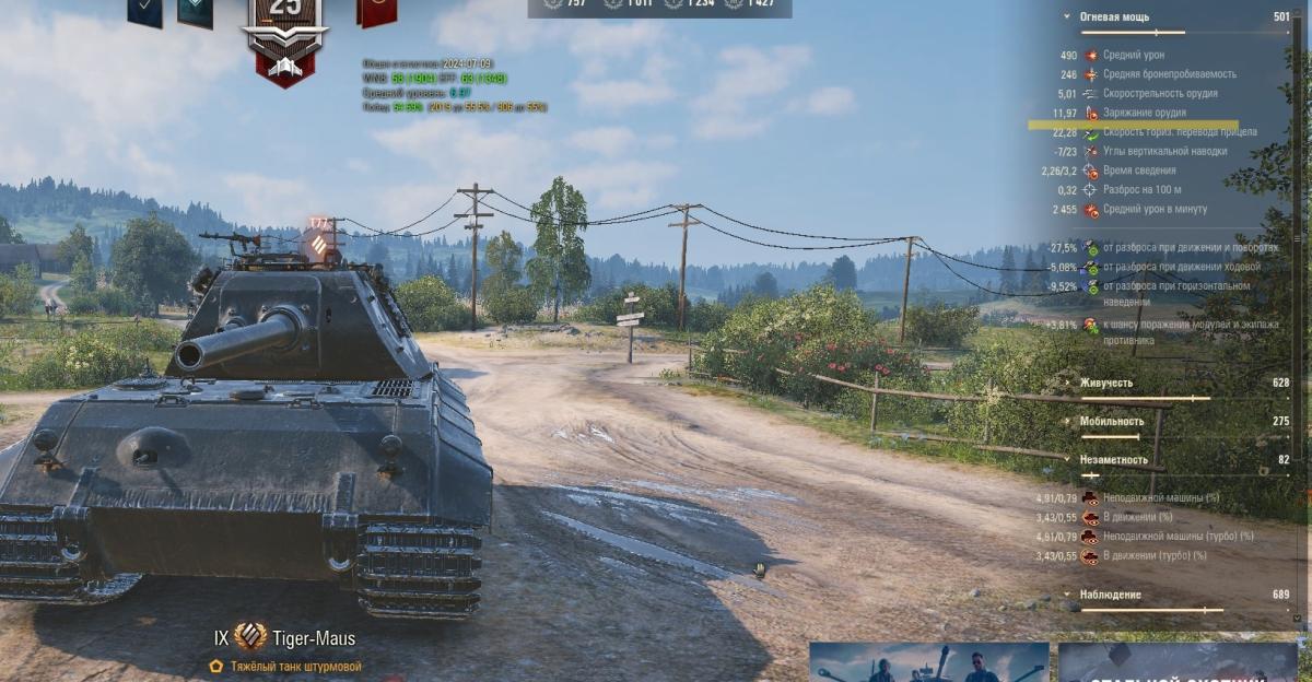 а ты так не увидишь, надо чтобы моды стояли Про танки и танк Тигр-маус, тогда у тебя кд будет отражаться 14,26 сек, а не 11, 97 как должно быть. Реально то орудие заряжалось как и должно быть, а вот стрелять не сможешь, пока отсчет в 14,26 не пройдет (пробовал за сек до окончания времени кд стрелять, не вышло)
