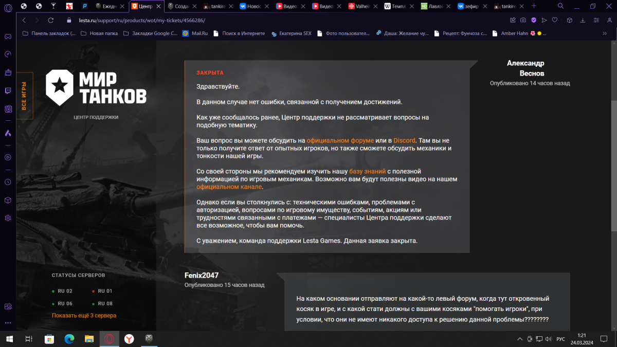 Получил награды "Основной калибр", "Воин" и "Медаль Редли-Уолтерса". При этом дали только 1 степень! Тех. поддержка заявляет, как обычно, что ни чем не занимается, заявляют что всеми проблемамами обязаны, по стандарту, заниматься сами игроки. Какого им надо, чтобы получить "Мастера"????? Опыт начисляется через какое место?