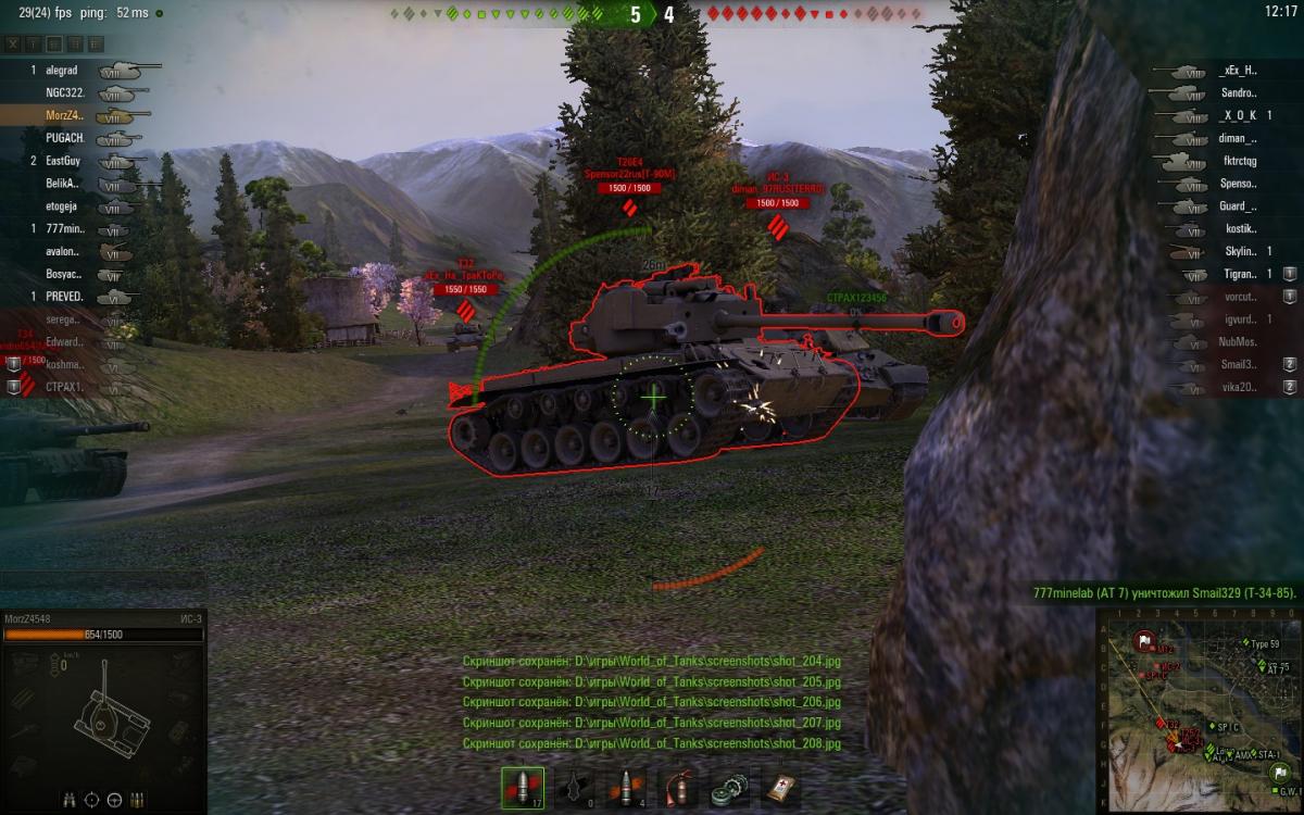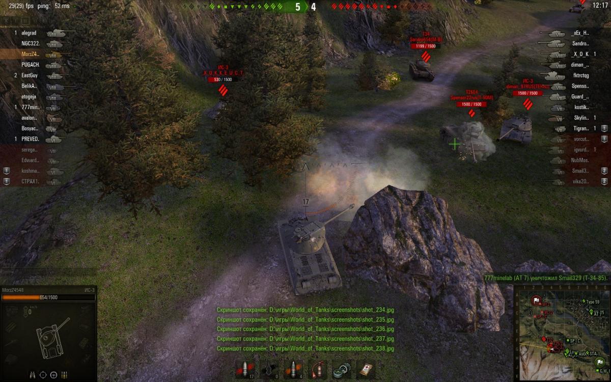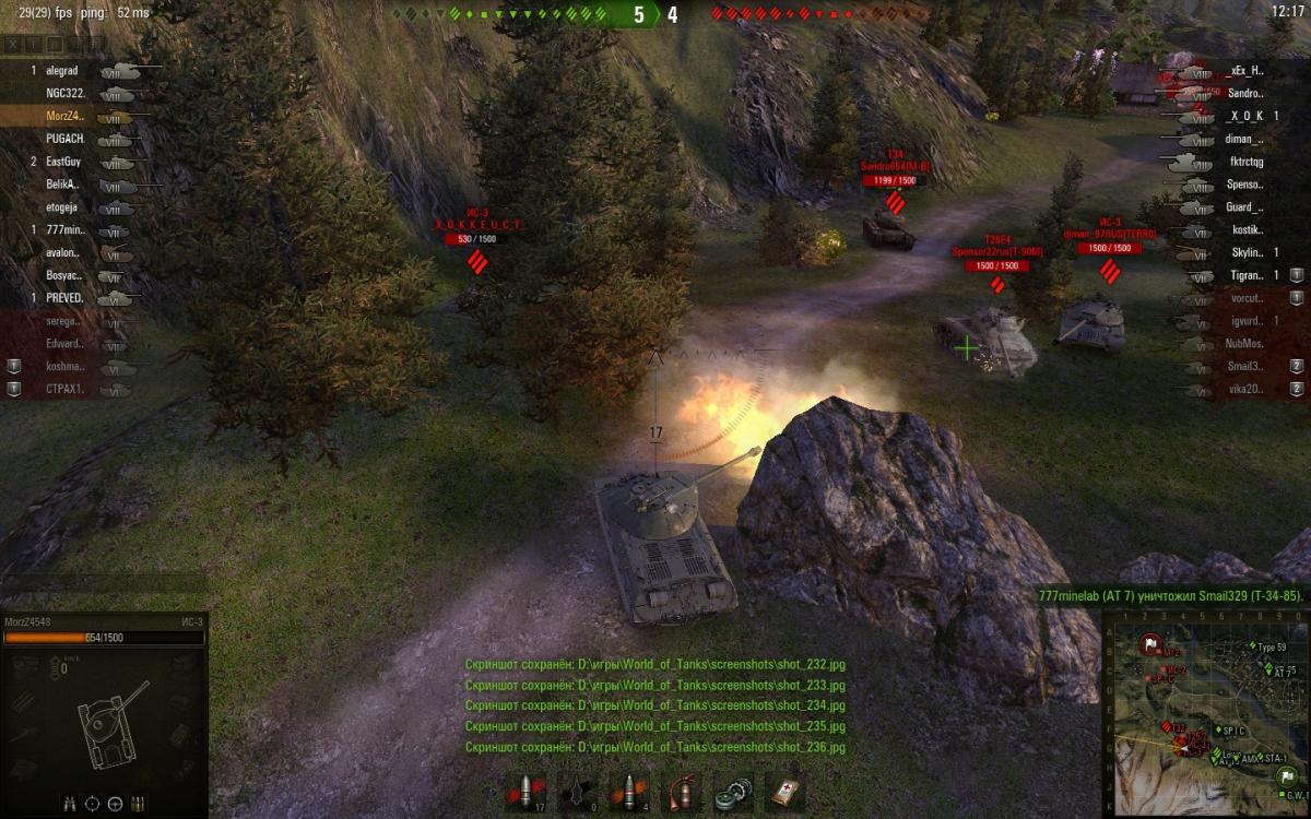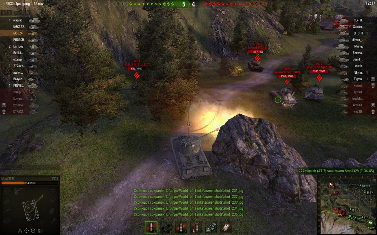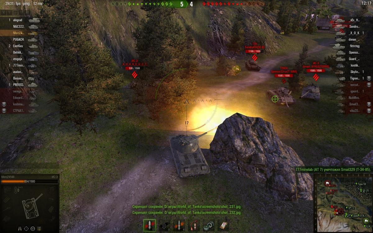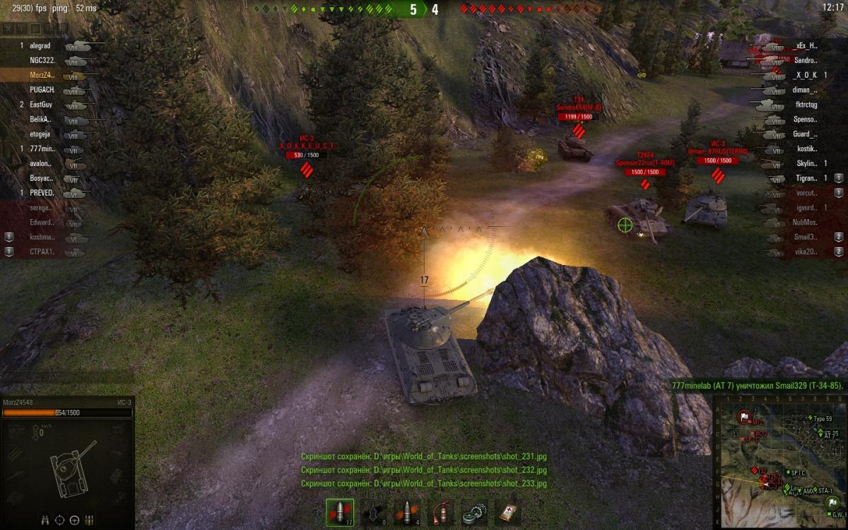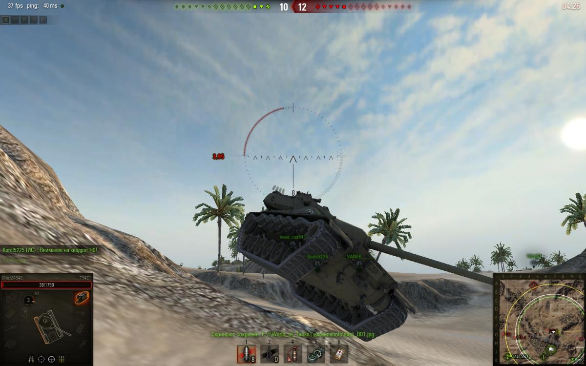 опишу что происходило . при выезде из-за камня ис-3 на супер першинга. как на фото видно что сведение было и прицел не прыгал. при выстреле снаряд попал на 2 метра в права.Расстояния было около 3-4 метров между танками. На фото видно что это именно мой снаряд фото было на замедленной съемке поэтому если бы кто то стрелял издали на фото было бы видно след от снаряда, и угол входа снаряда в броню тоже указывает что это мой снаряд... в общем смотрите сами... 20150716_1158_ussr-R19_IS-3_53_japan