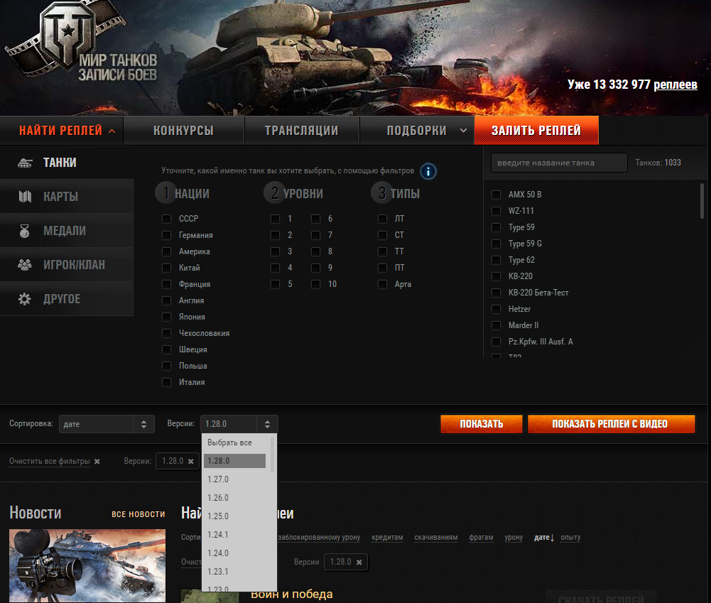 Добрый день уважаемые разработчики. Подскажите пожалуйста, будет ли обновляться сайт "tankireplays.lesta.ru"? После выхода любого обновления в нашей игре, сайт не поспевает за версией игры и актуальная версия реплеев в фильтре недоступна очень долго, а прошлый патч 1.29 так вообще не обновлялся, там в фильтре до сих пор доступна только версия 1.28. Прошу обратить ваше внимание, что реплеи и площадка для их просмотра это важная часть фан-сообщества, что напрямую влияет на интерес некоторых игроков к игре, меня например после просмотра пары реплеев очень мотивирует зайти в танчики и покатать пару десятков боев.