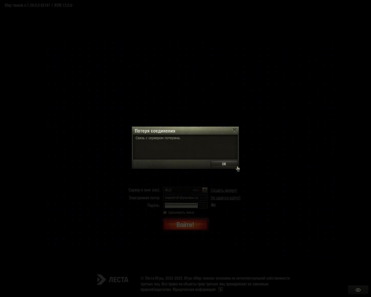 4 боя,два вылета.Дело не в модах,а в предпоследней обнове от 11 декабря,до этого все было нормально.На чистом с очищенном кэшем также вылетает с сервера при загрузке.Разрабы об этом знают,на своем форуме чистят посты,которые их не устраивают.Питлог прилагаю:http://cdn-frm-ru.lesta.ru/4.6l/style_extra/mime_types/txt.gif python.log 1009,94К