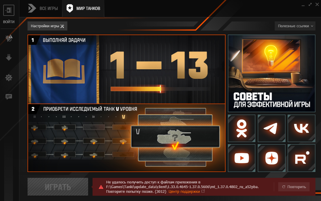 Здравствуйте. Не игра с весны, теперь при попытке обновить игру, выскакивает вот это https://forum-mt-prod.lesta.ru/monthly_09_2025/post-23290305-0-06051900-1757014830_thumb.png Что делать, куда копать?