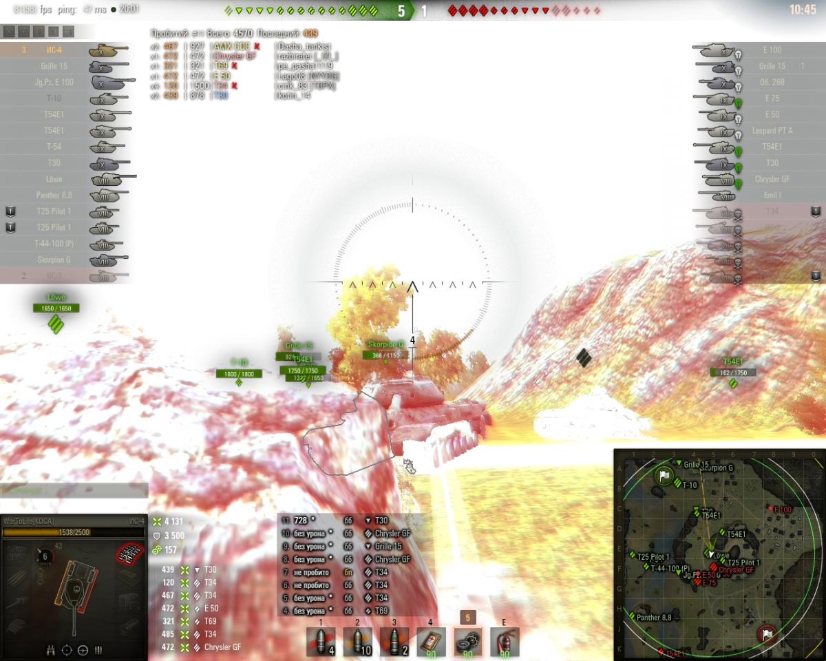 Сегодня впервые столкнулся с очень интересным багом. Кого винить не знаю, игру или моды. Судя такова, я на 13 90 фуловый выезжаю на Т49, тот в свою очередь отправляет в меня фугас на 887хп (если смотреть по модам(моды использую от протанки), ведь в послеигровой статистике нигде не посмотреть, сколько и от кого я получил урона, спасибо за это разработчикам) и вот, после такой фугасной плюхи я оказался уничтоженным. Очень интересно, если мод бы "глюкнул" и он показал не правильный полученный урон, тогда другой вопрос, почему модель танка не сменилась на уничтоженную? Ссылка на реплей http://wotreplays.ru/site/5709760#monastyr-wartolife-amx_13_90