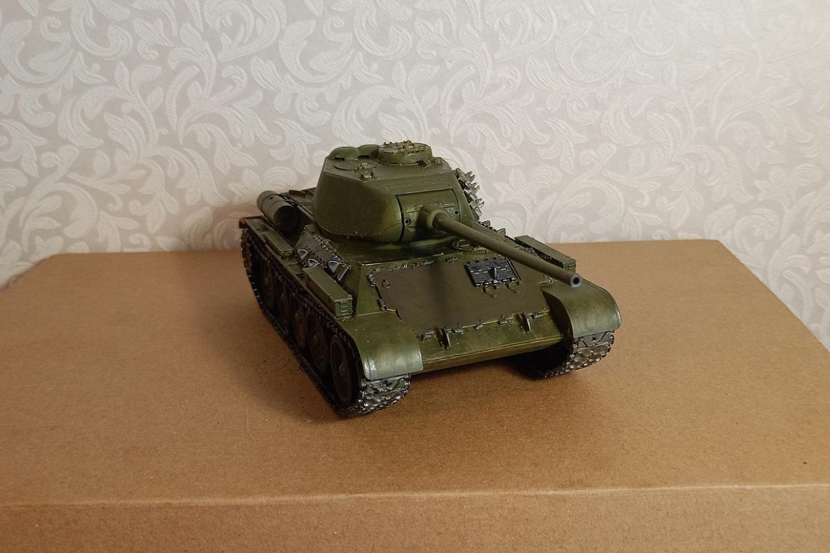 Подарили мне зятек с дочкой на НГ наборчик от Хоббибосс с танком Т-44. Вообще-то я желал от Миниарт, но они этот танк производить перестали. С месяц коробка пролежала нераспакованной, а потом возвращать было уже поздно. Короче, такое ощущение что комплектовщики прикололись и накидали в коробку первое что под руку попало: гусли от какого-то амера, элементы башни на литнике явно от 34-85, и т.д. Порадовала (поначалу) только ванна корпуса с рабочими пластиковыми торсионами, но и их не использовал, вдруг со временем усохнут и сломаются. Попытка собрать что-то адекватное успехом не увенчалась, ситуёвина как в бородатом анекдоте: как его не собирай, все равно Т-34-85 выходит.