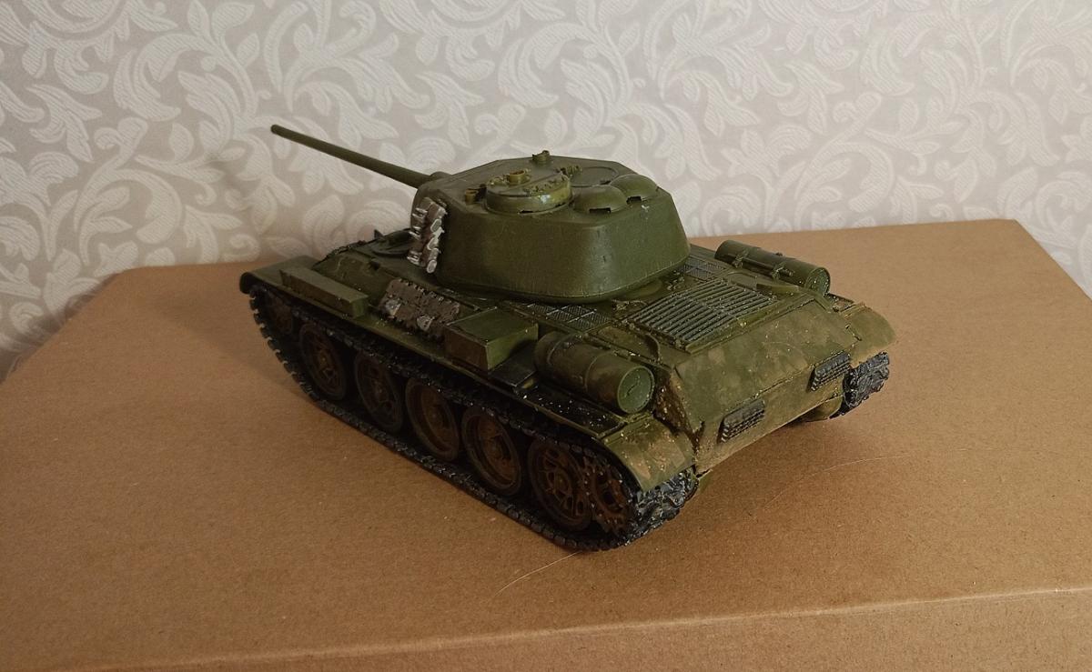 Ну хоть один догадался что сегодня 1 апреля и заметил подвох. Хоть сегодня и День Смеха, на самом деле история грустная, в том числе и для меня. Моделизмом я уже не занимаюсь, зрение не то, а потому делаю из нахомяченных ранее наборов от Звезды детские игрушки, которые разыгрываются между учениками младших классов за победу в разных конкурсах. С начала учебного года смастрячил ИСУ-152, СУ-100, Т-34-85, ИС, Т-34. Все с виниловыми гусеницами и вращающимися катками. Общения с нежными детскими ручками первые три модели не пережили, обломки были по договоренности возвращены мне (в разной степени комплектности и убитости). С Т-34-85 вышло печальнее всего, его выиграл типичный "ботаник" из третьего класса накануне зимних каникул. Но обладание призом вызвало лютую зависть т.н. "друзей", которые захотели подгоvнить и устроили символу Победы тест на прочность. Короче, расстреляли из детского пистолета пластиковыми пульками на морозе под 20. Разрушили до неиграбельного состояния, пацан потом просил восстановить, но это было нереально. Тогда я предложил малому уподобиться Ниф-Нифу и Наф-Нафу и построить из гoвнa и палок собственный домик, т.е. танк. Он и построил из обломков Т-34-85 (основа), ИСУ-152 (мто), СУ-100 (крупные корпусные детали) свой игрушечный танчик. Имитация дополнительной брони на ВЛД, траки в разных местах вынужденная мера, скрывают повреждения. От HOBBY BOSS тут кое что тоже есть, гусеницы, ведущие катки, три пластиковых трака на скуле башни.