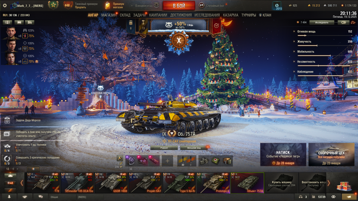 Тоже вчера забрал ,до этого не было , но не знаю что на нем делать ,5 боев в полигоне ,как то не очень получается .Светляком сейчас использую .выполнять ежедневные задания на обнаружения техники Е-25.