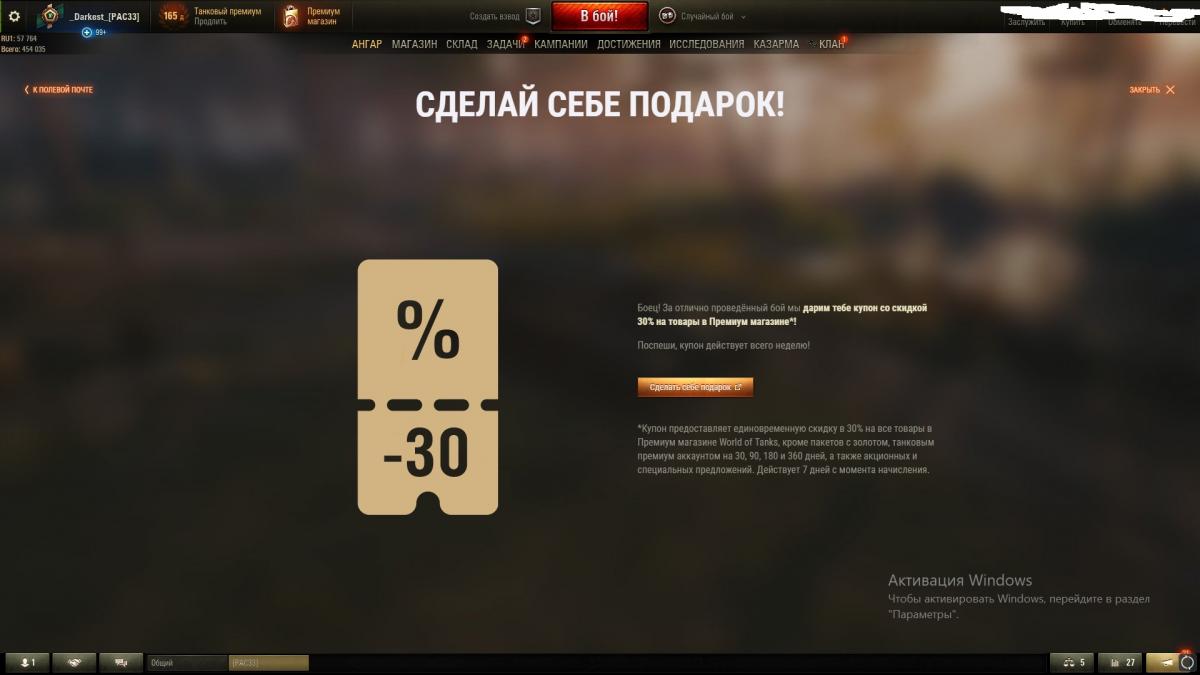 Получил в игре купон на скидку в 30% http://cdn-frm-eu.wargaming.net/wot/ru/uploads/monthly_01_2021/post-2349988-0-78937400-1610464524_thumb.jpg Нажимаю на кнопку: "Сделать себе подарок", открывается премиум магазин который радостно мне сообщает: "У ВАС НЕТ КУПОНОВ" http://cdn-frm-eu.wargaming.net/wot/ru/uploads/monthly_01_2021/post-2349988-0-43311200-1610464539_thumb.jpg Как побороть эту напасть!? Я так хотел потратить много денег, возьмите мои деньги!