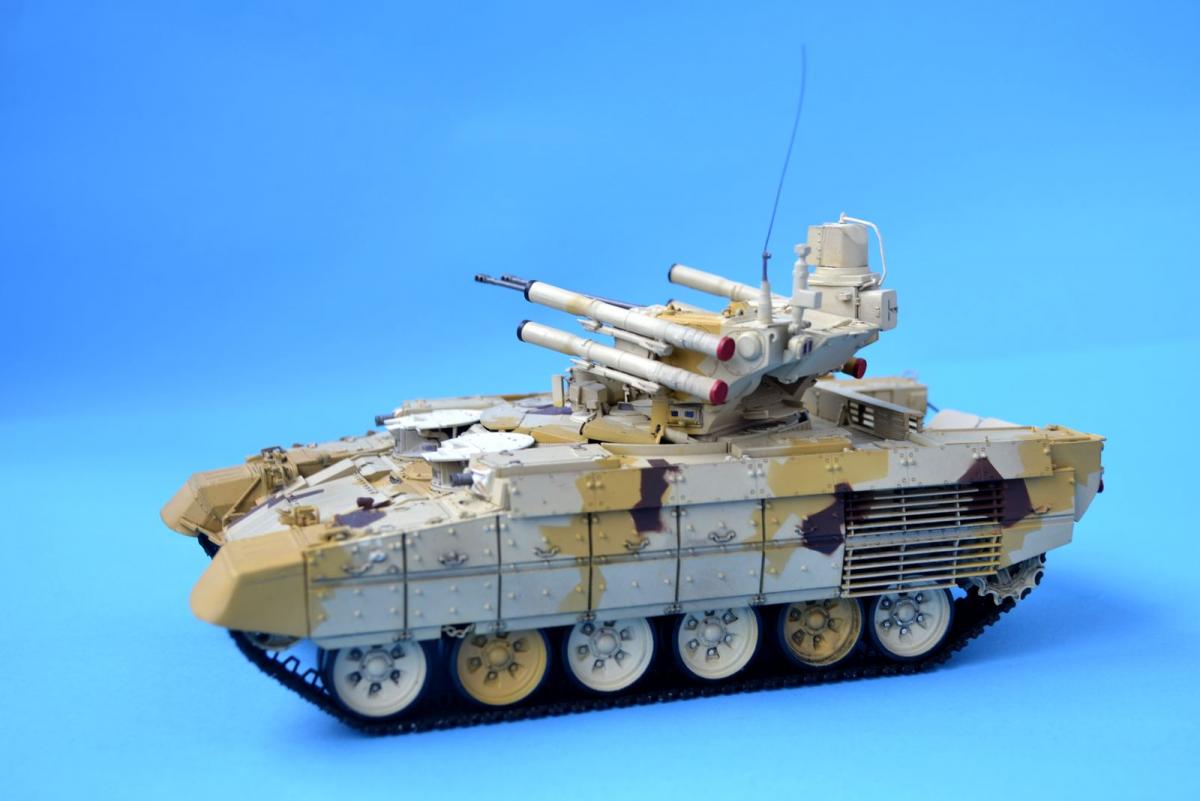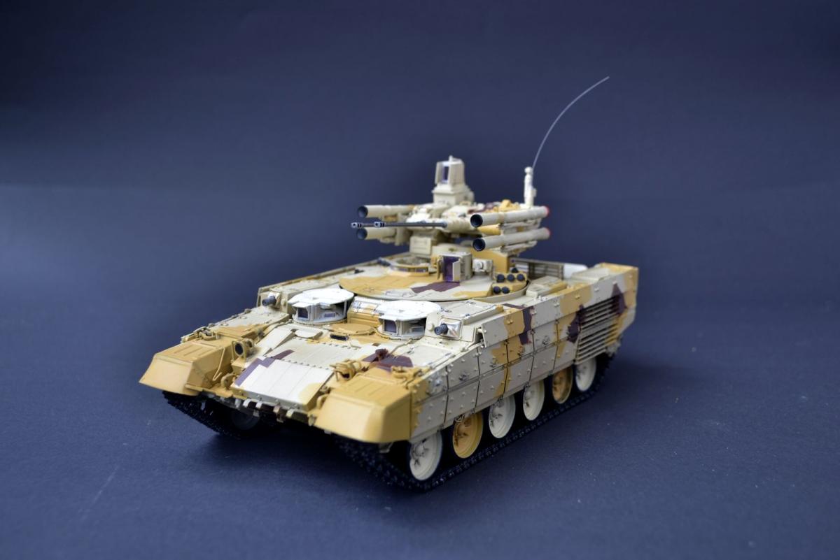 Всем привет.Хочу показать Вам свою очередную модель бтт. Интересно было сделать машину в экспортном камуфляже.Краска тамия,Хотел сделать чистый танк поэтому,минимум смывки.Только прошелся миговским фильтром.Приятного просмотра