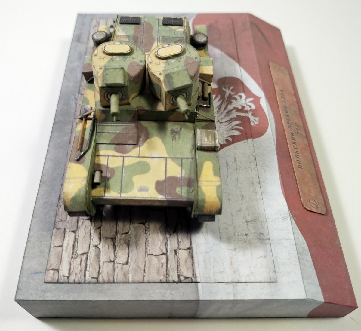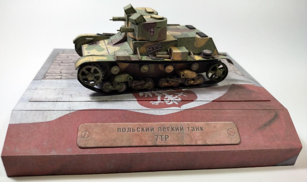 Приветствую всех! Решил собрать свой первый "Макет танка" (до этого занимался лишь "Бронекоробочками" и сторонними выкройками). Выбор пал на 7 ТР как на довольно простую на вид модель. Без косяков конечно не обошлось - возникли проблемы с ходовой (особенно с тележками). НО! результатом вполне доволен. Представляю модель на ваш суд: Ракурсы поближе: