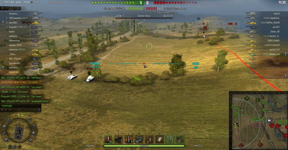 Французов прокачал всех.Все качаются быстро.Понравились амх 13 90,Лора и амх 30 1er prototype . Арта Бача тоже хорош. Когда прокачал амх 30В надеялся на лучшее,но поиграв 15 боев оставил до лучших времен.Не впечатлил.Наверное привык к АМХ 30 1er prototype. Сегодня вновь начал катать эту французскую СТ десятого левела. Играя во взводе получается лучше чем в одиночку. Даже если просто кто то из союзников помогает и то игра идет веселее. Нравится пуха с уроном на 400 ХП и выше.Один раз горел, Дроида R2-D2 ни кто из противников не выцеливал. Все норовят в корпус-картон и в лоб стрелять не целясь. Заметил что участились рикошеты об 30В. Стиль игры, наверное такой же как и на Bat.-Châtillon 25 t. Носится по всей карте, всем помогать, заходить с флангов и сматываться пока не насували. Если залез один- то смело в ангар.Разбирают на раз два три. Играть на второй линии пока не получается.Весь вечер танк бросает в топ команды. Часто использую автоприцел. Как в городе так и в поле выехав из за холма.Вылезти на холм не хватает 1°-2° УВН ,но хватает резкости двигла выскочить-пальнуть-спрятаться обратно. Пока ни разу не кританули ни одного члена экипажа. Думаю что если приноровиться и поймать свой стиль игры то этот Танк еще покажет себя... Была такая фигня.За весь бой успел пульнуть всего 3-4 раза подкалиберными и ушел в ангар. Каждый выстрел сносил по 150-190 ХП у СТ 9 левела и один выстрел по ПТ девятого уровня -снес всего 186 ХП. Ну а в других боях всё как положено - 390 ХП и выше.