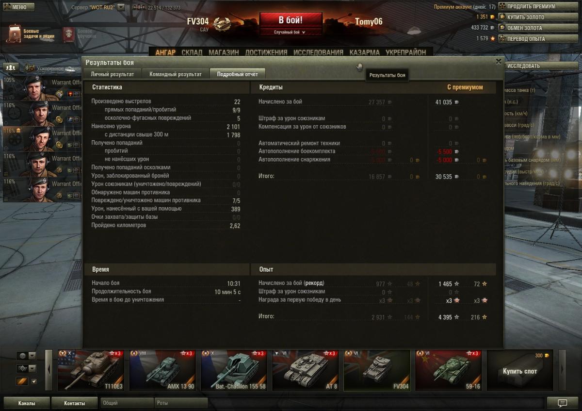 В бою на фв 304 нанес 2101 урона. Квас из противоположной команды нанес 2087 урона, но основной калибр дали ему а не мне. Хотелось бы узнать почему. Основной калибр. Присваивается игроку, нанёсшему наибольшее количество урона за бой. Нанесённый урон должен составлять не менее 20% от суммарной прочности техники противника и не менее 1000 единиц. Для получения достижения нельзя задевать союзников прямыми выстрелами. При равном количестве нанесённого урона награждается игрок, получивший наибольшее количество очков опыта за бой. Достижение выдаётся только в случайных боях. http://wotreplays.ru/site/3108848#team
