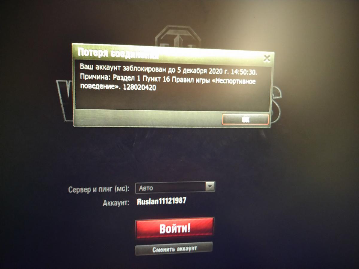 ИГРАЛ СЕГОДНЯ НИ КОГО НЕ ТРОГАЛ, ТУТ ЗАКРЫВАЕТСЯ ИГРА... ЕСЛИ ДАЖЕ КОГДА ТО РАННИЕ Я ТОЛКНУЛ КОГО ТО ТОЛЬКО ЛИШЬ ЗА ДЕЛО НО ЭТО НЕ ПОВОД БАНИТЬ! СОЮЗНИК НЕ ПОСТРАДАЛ!!! БАНЯТ ПОДРЯТ ВСЕХ НАСТРОЙТЕ СВОЮ СИСТЕМУ!!! РАЗБАНЬТЕ МЕНЯ!!! http://cdn-frm-eu.wargaming.net/wot/ru/uploads/monthly_12_2020/post-2393171-0-73181100-1607084005_thumb.jpg