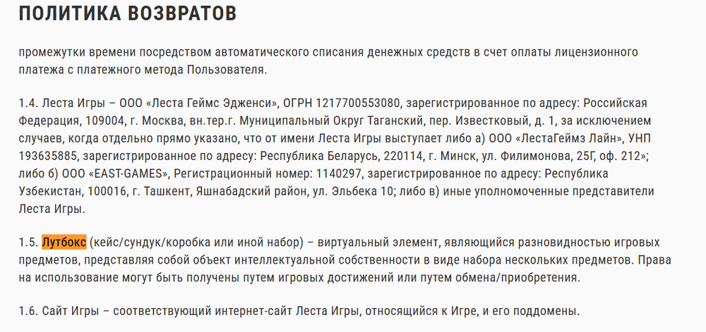1) Ваши контейнеры буквально лутбоксы это указано в вашей же политике возвратов (https://legal.lesta.ru/refund-policy).