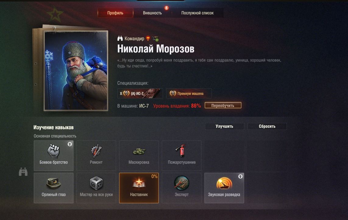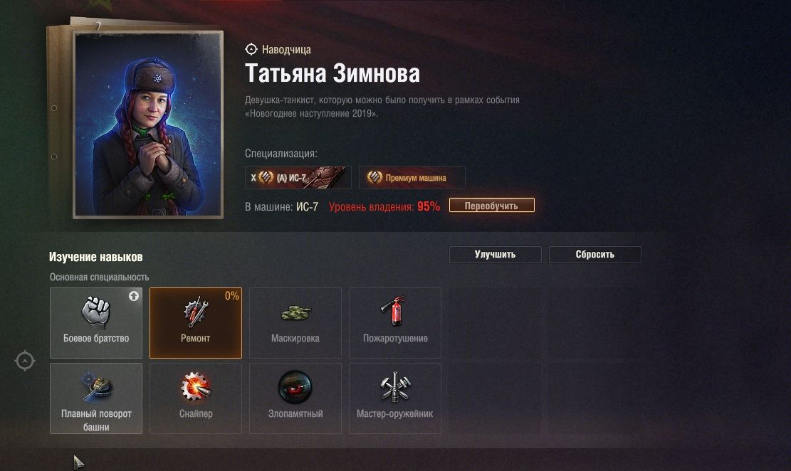 я в курсе как переобучать экипаж , а подскажите мне что это за интересный премиум танк (А) ИС-7 ? и каким это образом я его мог выбрать , выбирая танк через поиск танков в меню поиска танков конкретно этого члена экипажа ? что за ИС-7 там такой вдруг взялся ?