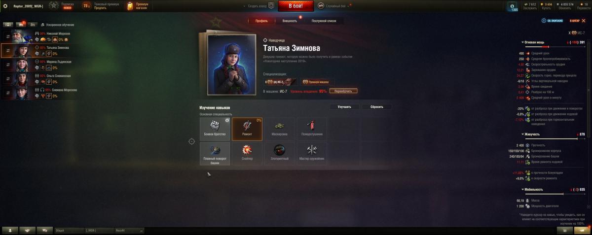 Здравствуйте , такая тима , ранее , годов так 3 или 4 назад , члены экипажа получаемые за прокачку елки на НГ давались не бессрочно в казарме висеть , а их нужно было активировать (посадить на какой либо танк) до какого то определенного числа следующего года , по моему , ну то есть через год , а так как я тогда по тихой шел на ИС-7 , и срок по этим рекрутам поджимал , то я и решил их оформить на ИС-7 , затем я то играл , то не играл , то на других аккаунтах , их у меня много , но вот сегодня на этот акк добавил свободки и купил таки 7-ку , а то натиск и все такое , а у меня одни ст здесь , и вот начинаю садить этот экипаж ИС-7 - на танк ИС-7 , и какая то непонятка получается , они садятся со штрафами , хотя написано на каждом что они экипаж ИС-7 (скрины прилагаю) , вот и хотел бы узнать в чем тут дело и можно ли это как то исправить ?