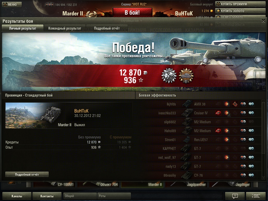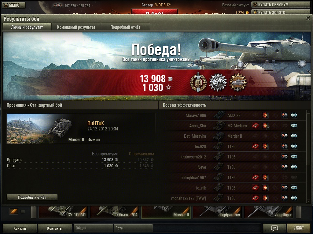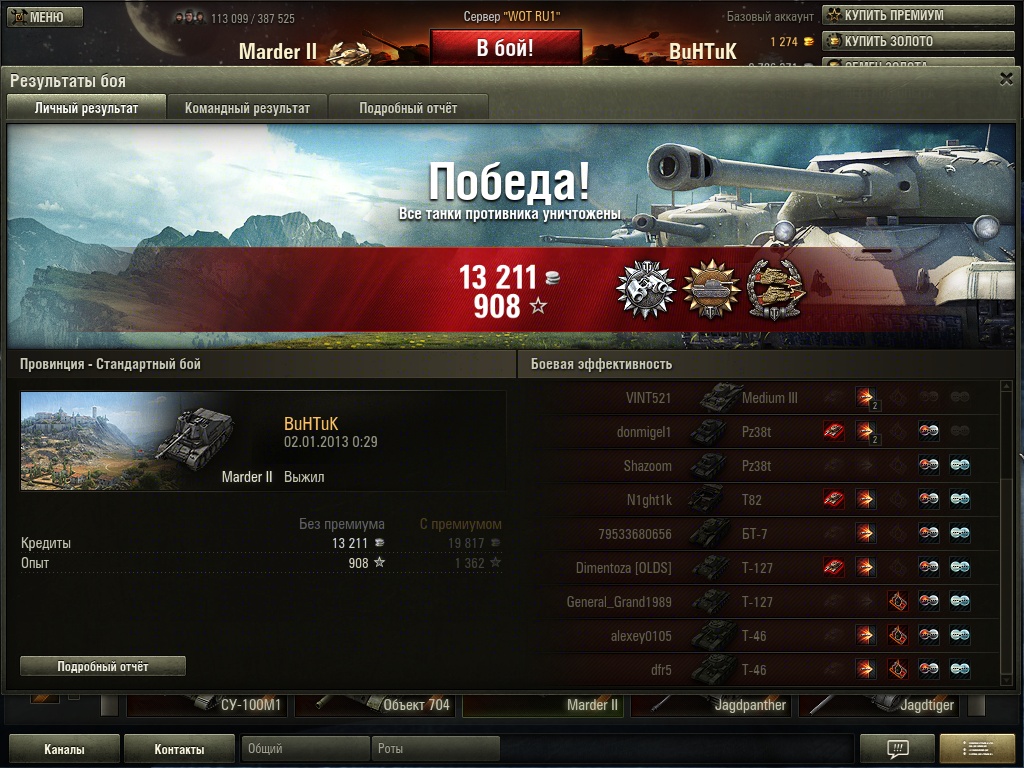 Долго не давалась медалька. Пробовал многое.... Малиновка, Т-50-2, Т-54... все тщетно. В итоговой статистике больше десятка поврежденных по моим разведданным танков, медаль "Разведчик", а "Дозорного" все не давали. И вот случайно, Провинция, Мардер II. 100% экипаж + “Рога” 3 боя = 3 медали http://cdn-frm-eu.wargaming.net/wot/ru/uploads/monthly_01_2013/post-243615-0-19798100-1357074512_thumb.jpg http://cdn-frm-eu.wargaming.net/wot/ru/uploads/monthly_01_2013/post-243615-0-66561400-1357074584_thumb.jpg http://cdn-frm-eu.wargaming.net/wot/ru/uploads/monthly_01_2013/post-243615-0-56066000-1357074587_thumb.jpg Вот точки с обеих сторон: http://cdn-frm-eu.wargaming.net/wot/ru/uploads/monthly_01_2013/post-243615-0-85594100-1357074590_thumb.jpg http://cdn-frm-eu.wargaming.net/wot/ru/uploads/monthly_01_2013/post-243615-0-08970100-1357074594_thumb.jpg Надеюсь кому-то помог.
