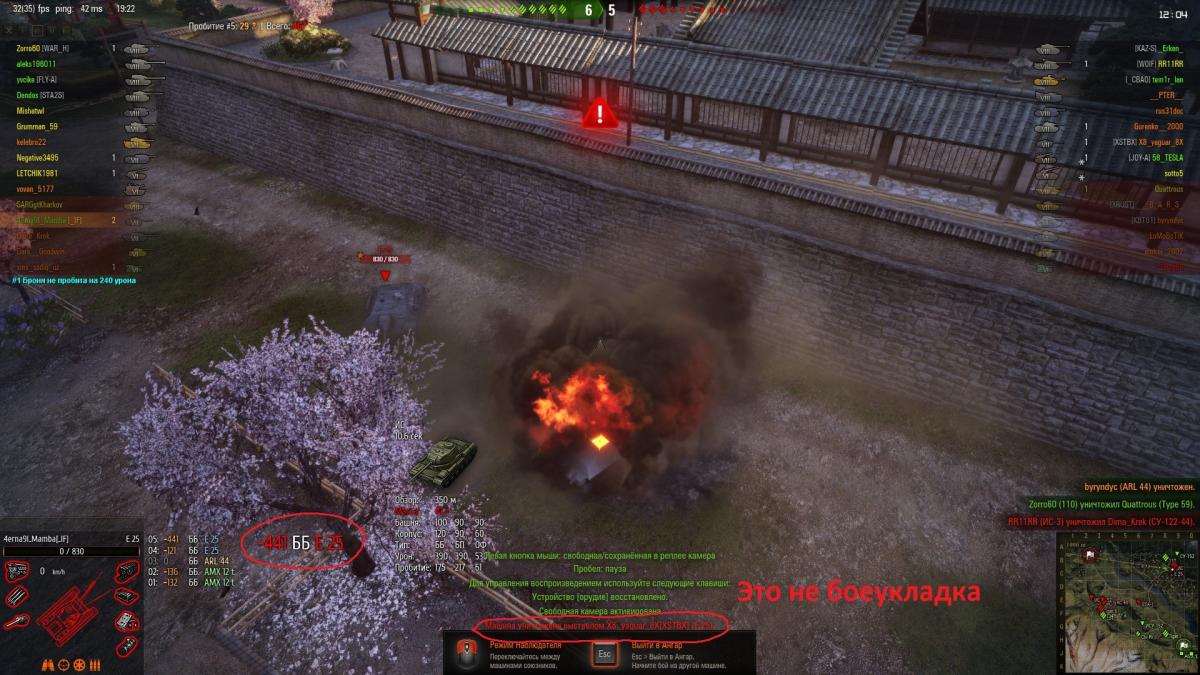 Приветствую всех! Да, я знаю ответ ВГ что читерство невозможно (все на сервере просчитывается и т.д. и т.п.), но сегодня произошел интересный момент, которому я никак не могу найти объяснение. Думал взрыв боеукладки, но это не так. Как Е25 смог с одного выстрела нанести 441 дамага (ни один тип снаряда у него столько дамага не дает) я не понимаю. Скриншоты и реплей прилагаются. Прежде чем писать про моды - объясните мне *** следующее: 1) Сложилось 2 выстрела? 3-4 выстрела должны сложиться чтобы 441 дамаг нанести. С его КД он физически не успеет 4 раза шмальнуть. 2) Открываем видео и считаем общее количество попаданий сами (2 плюхи от амх12т, одна от АРЛ без дамаг - все в пушку ушло, 1 выстрел от е25 и через примерно 3 секунды следующий на 441.) Еще раз повторю - смотрим видео очень внимательно. Выезжает е25 - делает выстрел - до следующего выстрела на 441 хп проходит 3 секунды. Он ФИЗИЧЕСКИ не успевает сделать 2-3 выстрела чтобы они сложились (якобы глюк мода). Смотрите видео и проверяйте по часам (кд у е25 - 2.5 сек), он просто не мог сделать 3 выстрела чтобы они сложились. Не верю что это моды глючат. Были приколы когда глючили моды и показывал космический дамаг, но это было объяснимо. Тут не верю. http://wotreplays.ru/site/4984771