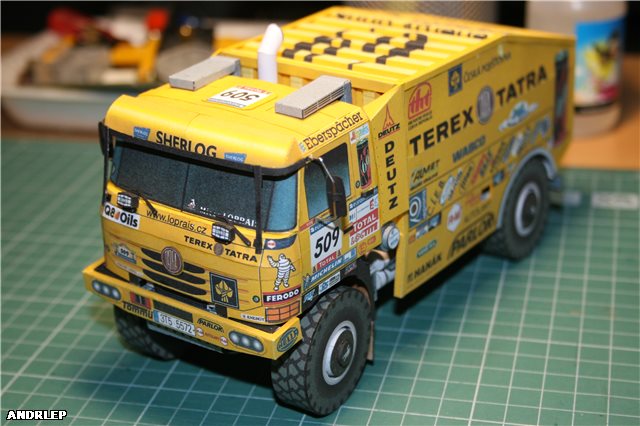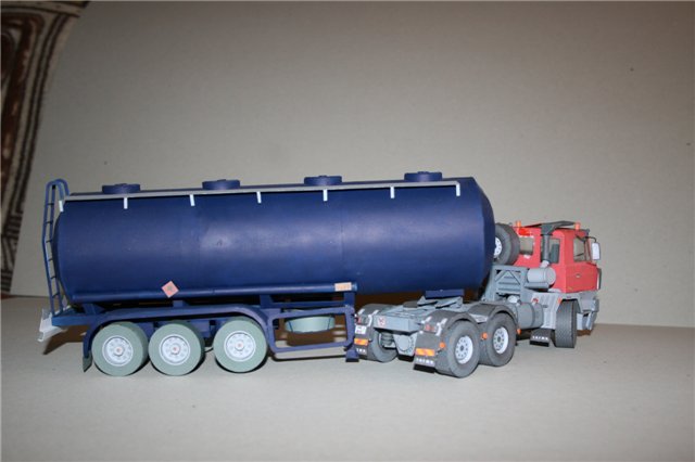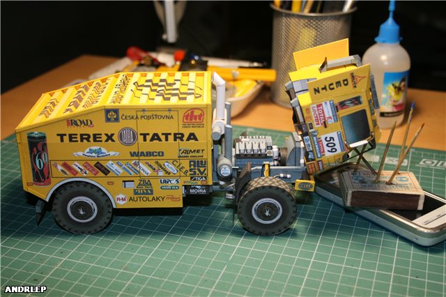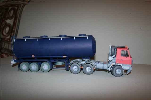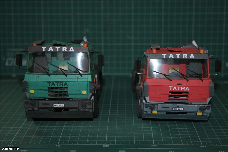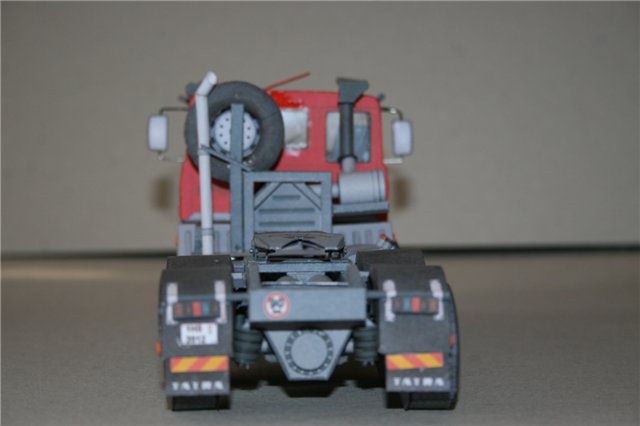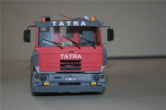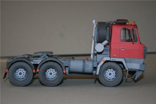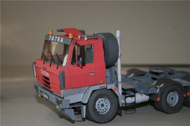 Ну вот решил выложить. Модель собирал давно. Первой была Татра с красной кабиной. Материалы обычные: бумага, картон,зубочистки, проволока. Подкраска акрил от Звезды. Ну вот и модель: