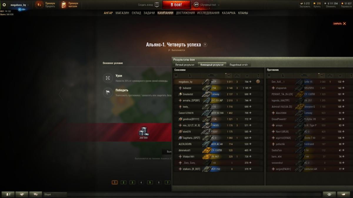 собсно сабж. Лбз! Альянс-1. Четверть успеха - не засчитан! итак: 1) Нанести 25% от суммарного урона своей команды. 2) Уничтожить противника/ захватить или защитить базу. дополнителное: 3) Не быть уничтоженным по итогу боя. требуемая техника - США, Великобритания, Польша. играл на 60 ТР (Польша) дата, время и карта есть на скриншоте... ------------------------------- Не понимаю, почему ЛБЗ не пошло в зачет. з.ы. нанесено более чем 25% команда нанесла суммарно 16806 единиц урона мною нанесено 5011 единиц урона или нужно именно (ровно) 25%??? создать тему побудило повторное не зсчитывание данного лбз. да, и еще.. одно пробитие было в "темноту" в нубокуст.