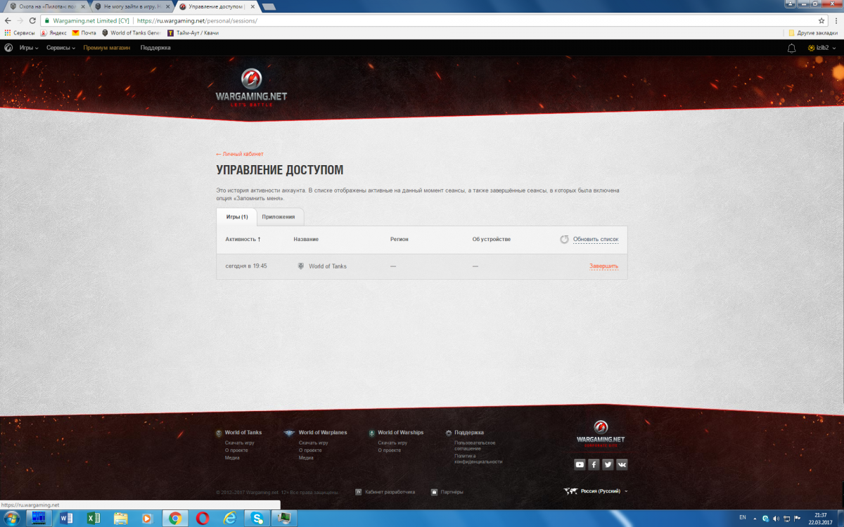 Помогите вырубить сессию на RU2. Скриншот прикрепил. Логин izib2 Через личный кабинет пробовал. Появляется снова, Заявку посылал, но тишина. Комп перегружал. Не помогает Для ЕБЗ требуется время. А войти в игру не могу. Спасибо. PS. Можно ли просить о компенсации зачета ЕБЗ для зависших?
