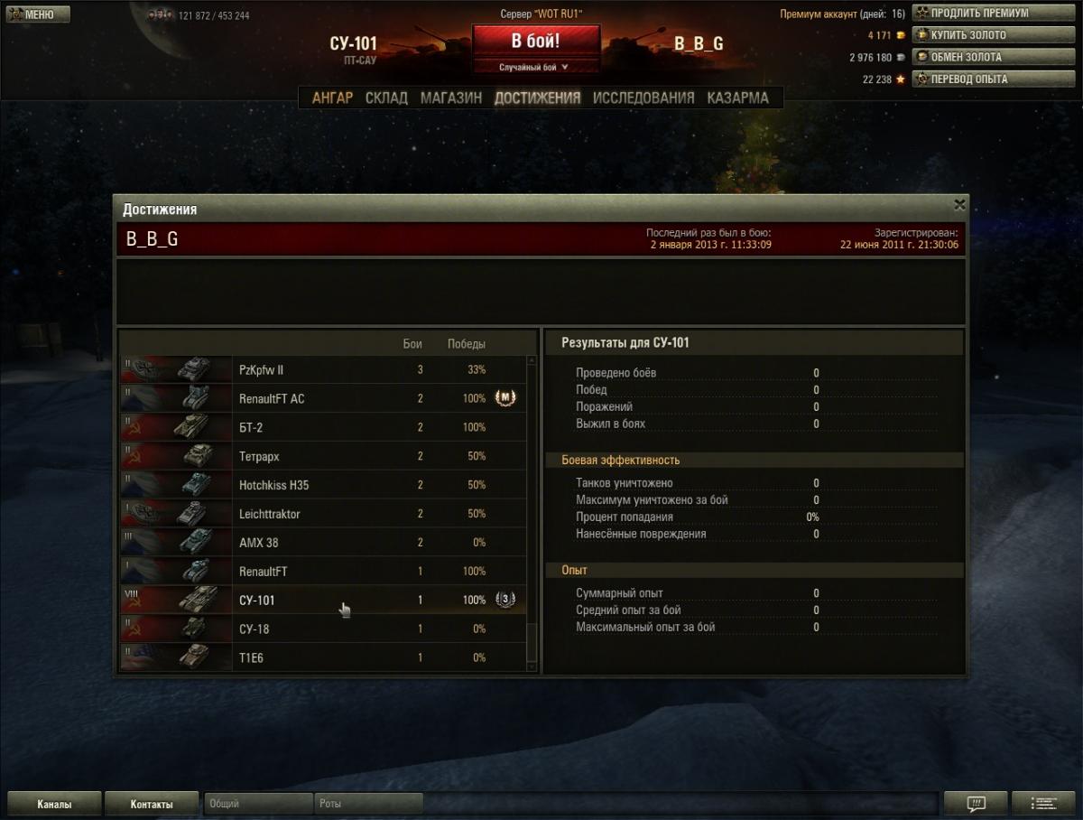 Первый бой на СУ-101, перед самым окончанием боя рвется связь с сервером. Перезашел в игру, удивился что нет никакого сообщения по бою в системном канале глянул в статистику по по машине: машина в статистике появилась, и даже третий класс присвоился, но все значения по нулям, см прикрепленный файл. Теперь собственно вопросы: 1) Интересна собственно механика такого глюка... насколько я понимаю в базу должны заноситься либо все результаты боя либо никаких? И собственно какое отношение к статистике имеет вылет клиента, вроде как вся статистика на сервере обрабатывается... Как-то не понимаю.. 2) В статистике может что-то постфактум поменяться... например результаты сейчас в каком-то кэше на сервере, а потом в основную базу в какой-то момент попадут или так оно и останется? ЗЫ; пятикратный опыт начислился а вот денег не уверен