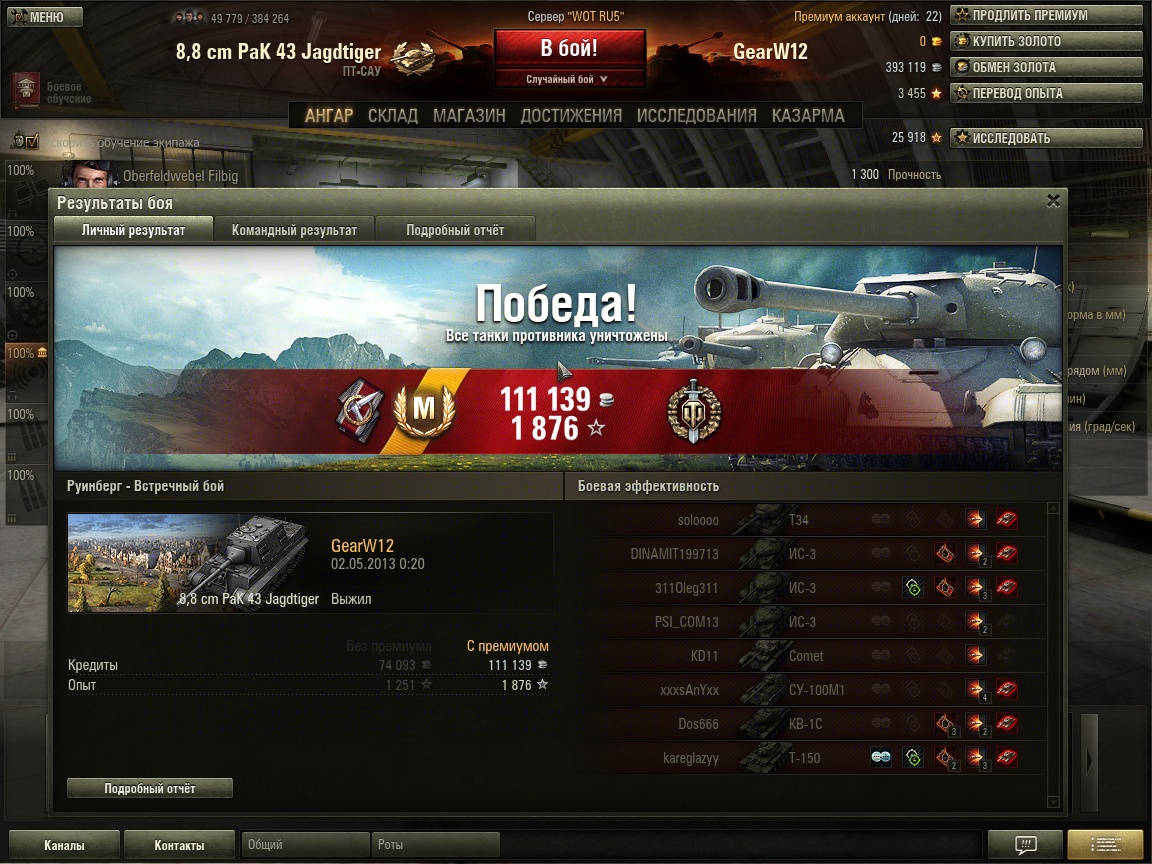 Вот такое сотка может,когда хочет. Однако, на 23 февраля была акция,года голд снаряды были относительно копеечные. махнул рукой кинул пару сотен решил откатать десяток боев с голдой) Выцеливая, диву давался "не пробил" против львов,ис-3их и т п. С ис-3 честно ухахатывались в чате. Он выкатывался из здания, я слал ему точненько в бочину снаряд и он откатывался. подряд 4 раза не прошил ему бочину голдой. А порой ББ подряд шьют все и вся в лоб. После Е-75, от ствола которого получаешь именно то, что ожидаешь, топ у е-100 - замысловат.