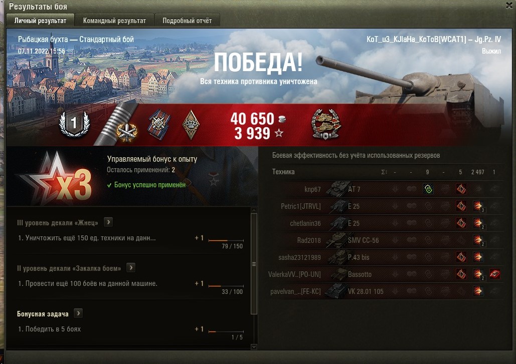 Катаю банально классику ПТ: трубы, досыл, сетка. Боновое оборудование не ставил, Шарик и так очень неплох. Правда экипаж прокачан на обзор, ББ, плюс доппаёк. Обзор более 500 метров, получается и посветить. Шарик позволяет быстро занять точки отстрела в начале боя, при надобности их сменить, в конце успеть в любую точку карты. К сведению привыкаешь, у меня проблема только медленный поворот башни, по урону средний держать надо около 3000 хп и то медленно будет ползти отметка вверх)))