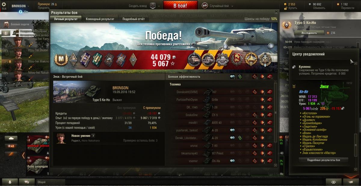 7. Урон не переплюнул, но спасибо союзникам - с получением званий и медалек совсем не мешали. http://wotreplays.ru/site/8814499#ensk-br0nson-type_5_ke-ho