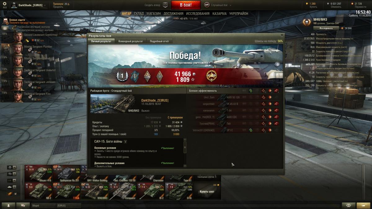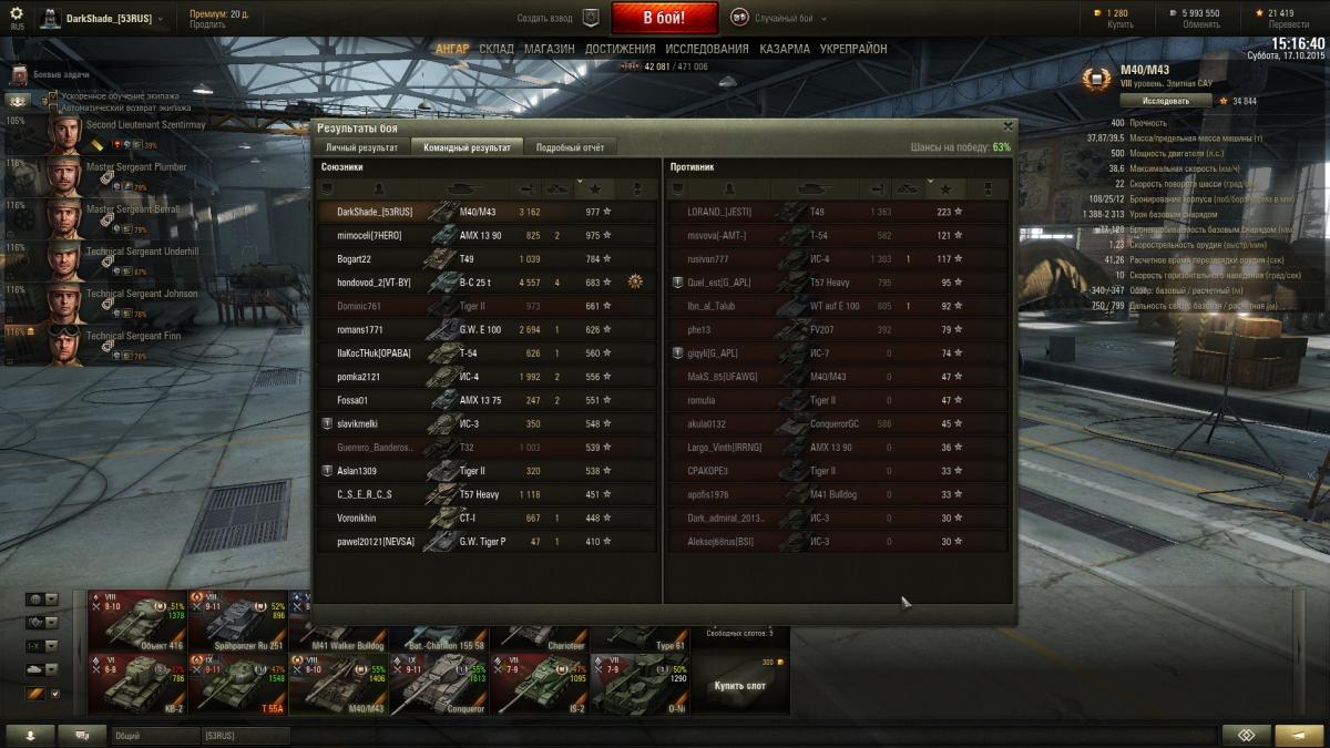 хааааа. Ну вот поныл и через часик САУ 15 позади М40/43 тащит Все, на арте пока не играю, бомбит уже от нее !! Всем удачи !