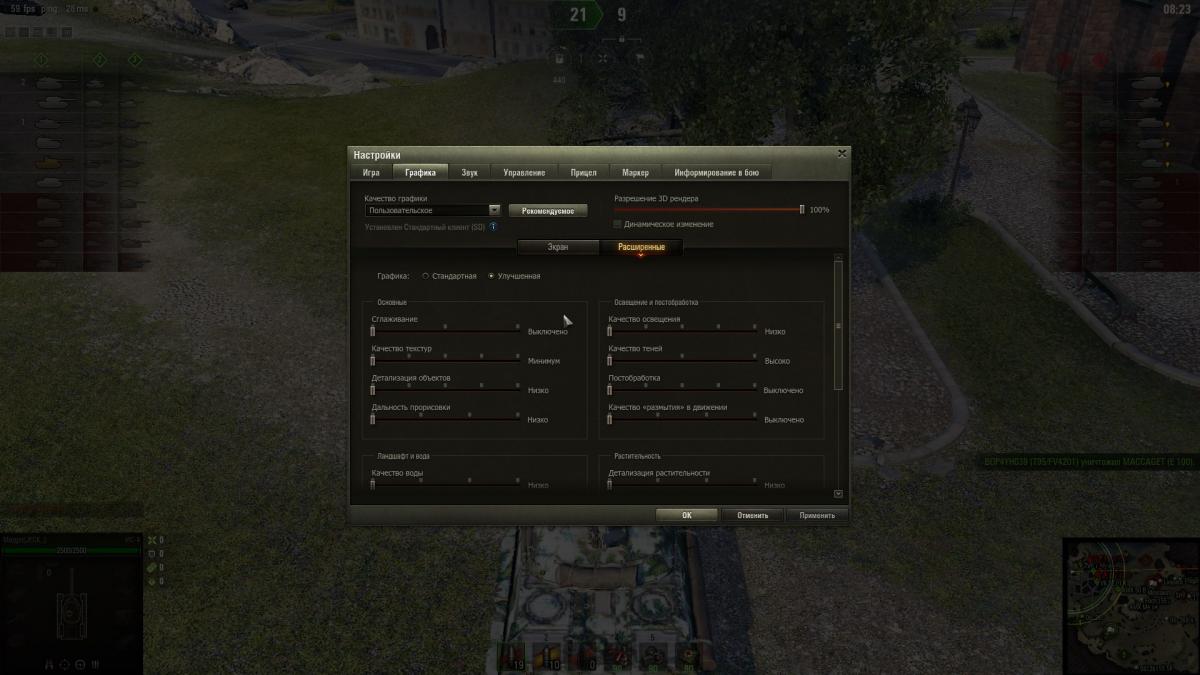 Подскажите что можно отключить в танках чтобы снизить нагрузку на ПРОЦ CPU ???