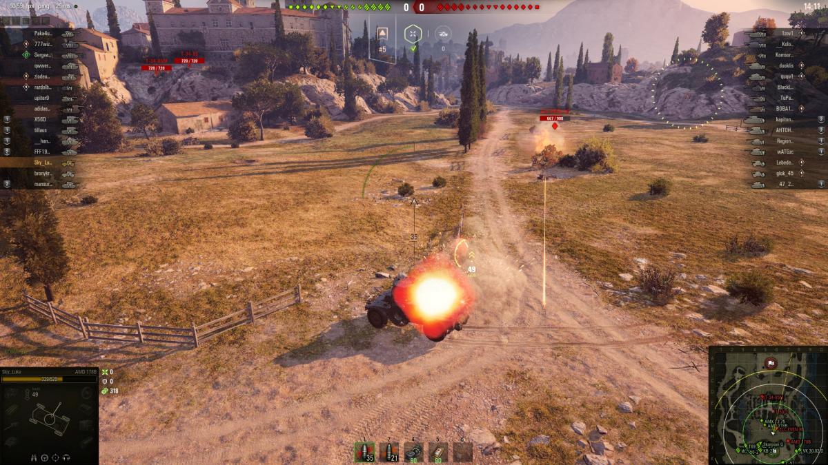 ФПС поднять выше - невозможно в силу того что монитор имеет ФПС 60, ну и игра выдает 60 . Если игра выдаст 100 (что может на моем компе), монитор все равно покажет только 60 раз в сек. Насчет перков , наверно все так и есть, только стреляй он даже стоя на полном сведении в зад меня - попадать не должен. Да и выше я писал про случай с прямым движением. Тут всё завязано на компенсацию пинга , и вот она почему то работает очень странно (компенсирует не всем и не всегда), кстати я сам иногда (очень редко) точно так же попадаю даже когда явно вижу что выстрелил позади танка.