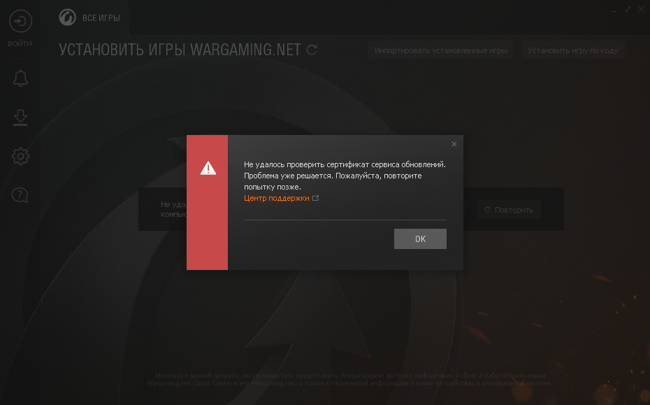 Я то пробовал , вот ты нет. Если ты про это: "Чтобы играть в WoT Classic, тебе необходимо авторизоваться в Game Center" то скажу что до этого пункта не доходит эта инструкция, после запуска файла установки классик версии, выскакивает ошибка как на скрине выше, и выбор папки установки и загрузки не происходит, какой нафиг играть до авторизации еще не дошли. Или ты имеешь в ввиду что инструкция не правильная ? и надо сначала авторизоваться а потом качать ?
