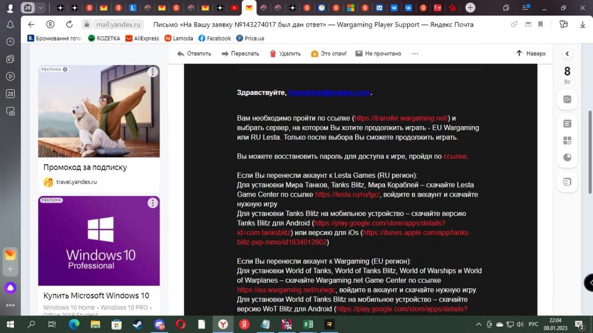 Добрый день. Проблема такая, у друга аккаунт был зарегистрирован на домен @yandex.ua, но яндекс убрал этот домен из оборота, и все почты с этим доменом переименовал в @yandex.com , друг не может восстановить пароль из за этого, техподдержка его игнорирует уже более недели что вг, что лесты, просто на почту пришли письма что заявки приняты, и тишина, больше недели, я так же сделал заявки в техподдержку в личном кабинете с просьбой решить его вопрос, но там так же более недели нет ответа, это нормально вообще что цпп игнорирует заявки более недели? Так же мои заявки по другим вопросам игнорируются, что за отношение к игрокам? Ответьте на мои заявки, там все подробно описано, увольте менеджеров ответственных за это, что за некомпетентность, человек более недели ждет ответ на свои заявки