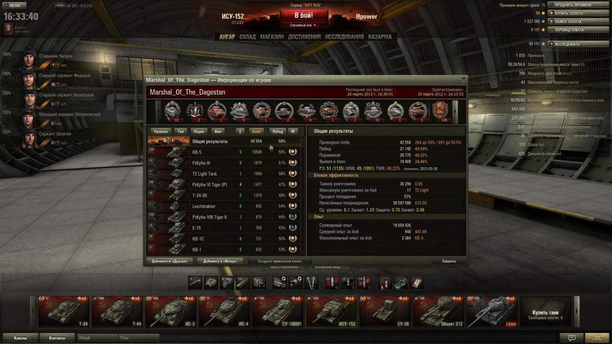 Доброго времени суток, уважаемые посетители форума. Редко пишу на форуме, обычно выступаю в роли читателя. Суть моей темы такова: Недавно натолкнулся на одного очень интересного человека, который имеет за плечами более 40 тысяч боев (если быть более точным то более 42.5 тысяч). Сначала подумал что человек очень часто играет, или аккаунт один на несколько людей, но потом присмотрелся к дате его регистрации и был просто шокирован! По дате регистрации аккаунту чуть больше года и такое количество игры просто поражает (если принять время одной игры = 15 минут (с учетом поиска матча, задержки перед стартом и пр. мелочи) то для такого количества боев потребуется более 400 суток непрерывной игры). Скрин прилагаю.