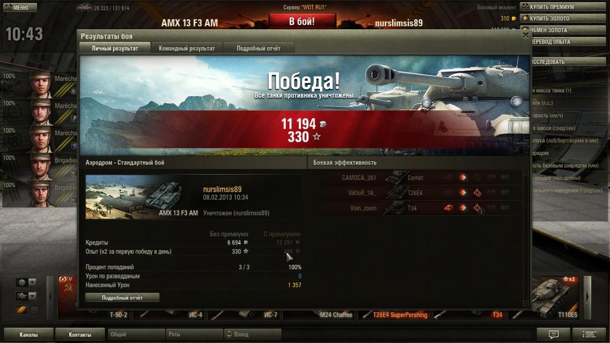 Здравствуйте! Сегодня снова столкнулся с проблемой в начислении опыта и кредитов, как отвечал разработчик в прошлой теме: "Вы вышли из боя до его окончания, поэтому в графе уничтожен ваш никнейм, поэтому вы оплатили полный ремонт техники и по этой же причине на вас был наложен штраф по опыту." --- но это далеко не так. Бой благополучно закончился никто не выходил из него, мало того, что я уничтожен каким-то мистическим образом сам собой, так и тут мне еще за такой урон дали 330 опыта.(Удвоенный) Хотя союзная арта настреляв всего на 478 урона получает 489 опыта, чем я то хуже? И сколько будет это продолжаться, повторю еще раз что в ангар меня перенаправило автоматически(как и всегда). Что ответят разработчики? Реплей : http://wotreplays.ru...download/687098