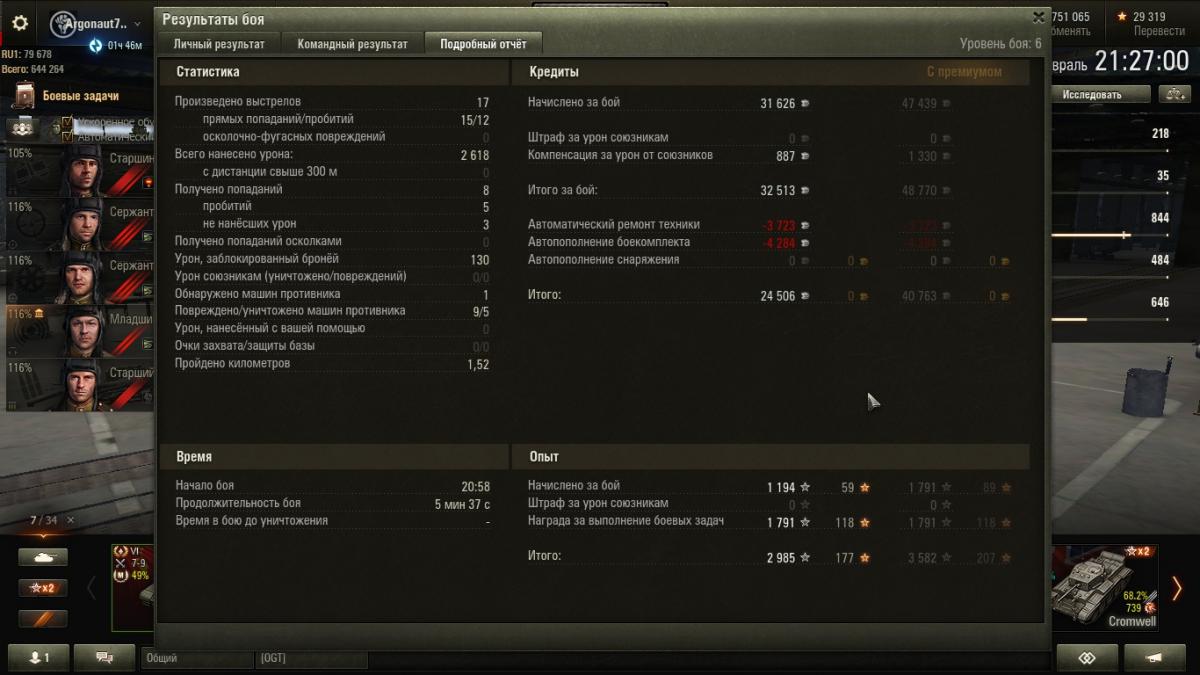 Когда купил Cromwell B думал, что буду гонять лучше чем обычный Cromwell. Но покатав пару боев понял, меня где-то развели и решил разобраться. Меня удивили особенности ттх обычного кромвеля в ангаре указано скорость поворота 37.54 град/сек. При более подробном изучении динамики танка всплывает интересные факты скорость поворота на твердых грунтах 58.35 град/сек средних 52.51 град/сек мягких 29.17 град/сек. ГДЕ ТУТ 37.54 ГРАД/СЕК??? Далее тоже в ангаре смотрим ттх прем кромвеля б указано скорость поворота 52.14 град/сек. Находим подробные данные динамики скорость поворота на твердых грунтах 52.14 град/сек средних 43.45 град/сек мягких 17.38 град/сек ТУТ ВРОДЕ ВСЕ НОРМ Как видим всеми любимый WG нас "немножко обманывает" в ангаре одно по факту вообще другое. У меня ВОПРОС Зачем????????? Несмотря на то что по ангарным ТТХ премиум кромвель как бы лучше обычного кромвеля ЭТО НЕ ТАК!!! На самом деле все абсолютно наоборот, обычный кромвель имеет динамику лучше чем прем аналог. Хотя по проходимости кромвель б лучше кромвеля обычного по твердым грунтам 0.48 против 0.86 по средним грунтам 0.58 против 0.96 по мягким грунтам 1.44 против 1.73 После этого "удивительного" для себя открытия, я вряд ли буду донатить картошке как это делал за последние 2 месяца.
