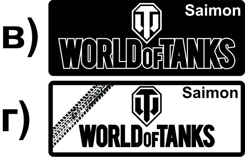 Всем привет! Возникла идея сделать наклейки на авто WoT, по принципу клубных наклеек. Что бы можно было узнавать друг друга на улице, приветствовать друг друга и т.п Для этого я разместил на наклейки лого сайта, ник, модель танка и его очертания. Цвета наклейки можно сделать разные. Ник и модель танка приведена для примера т.е (они будут для каждого игрока индивидуальны) Интересно услышать ваше мнение, предложения, дополнения. Для того что бы примерно понять какой вариант наиболее удачный прикрепил голосовалку.(можно выбрать несколько вариантов) Если идея понравиться думаю варианты будут дополнены и доработаны. http://cdn-frm-eu.wargaming.net/wot/ru/uploads/monthly_11_2011/post-2510362-0-70463500-1321862989_thumb.jpg http://cdn-frm-eu.wargaming.net/wot/ru/uploads/monthly_11_2011/post-2510362-0-73118800-1321862994_thumb.jpg http://cdn-frm-eu.wargaming.net/wot/ru/uploads/monthly_11_2011/post-2510362-0-00724200-1321863000_thumb.jpg http://cdn-frm-eu.wargaming.net/wot/ru/uploads/monthly_11_2011/post-2510362-0-78724700-1321863004_thumb.jpg http://cdn-frm-eu.wargaming.net/wot/ru/uploads/monthly_11_2011/post-2510362-0-20313300-1321863011_thumb.jpg