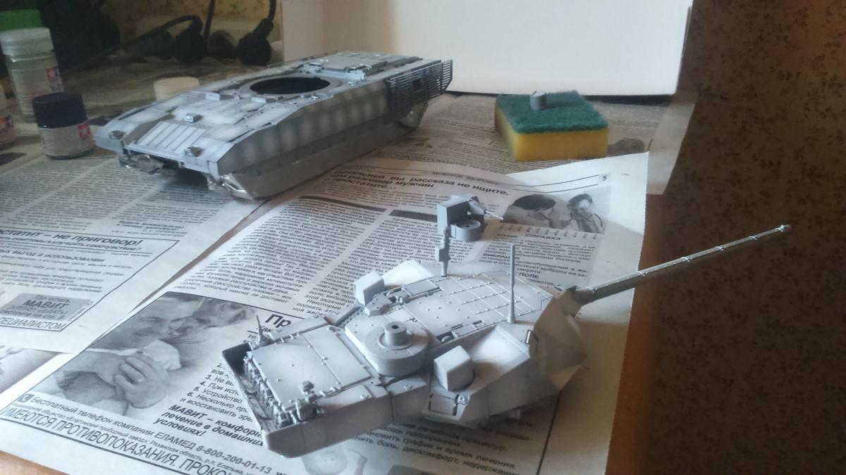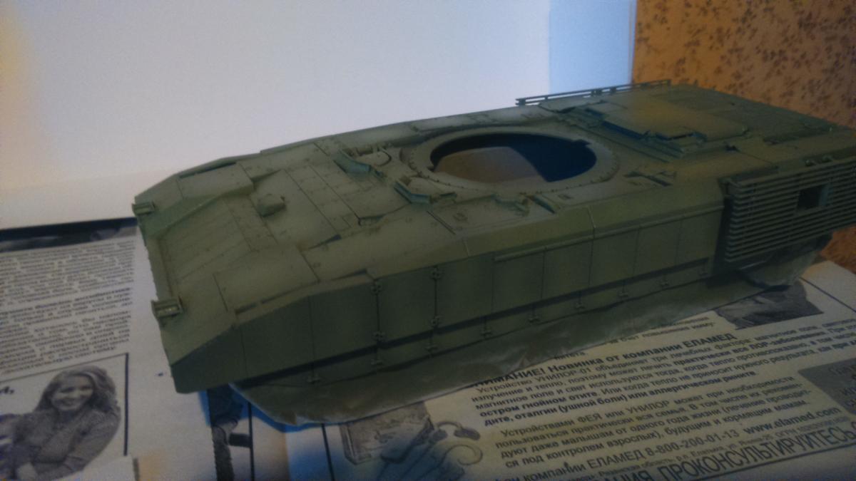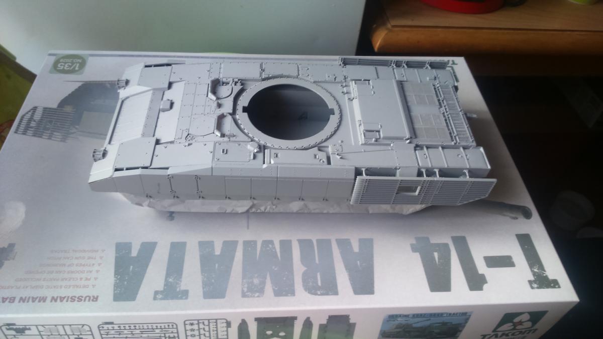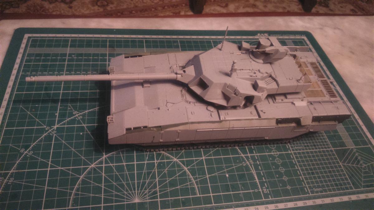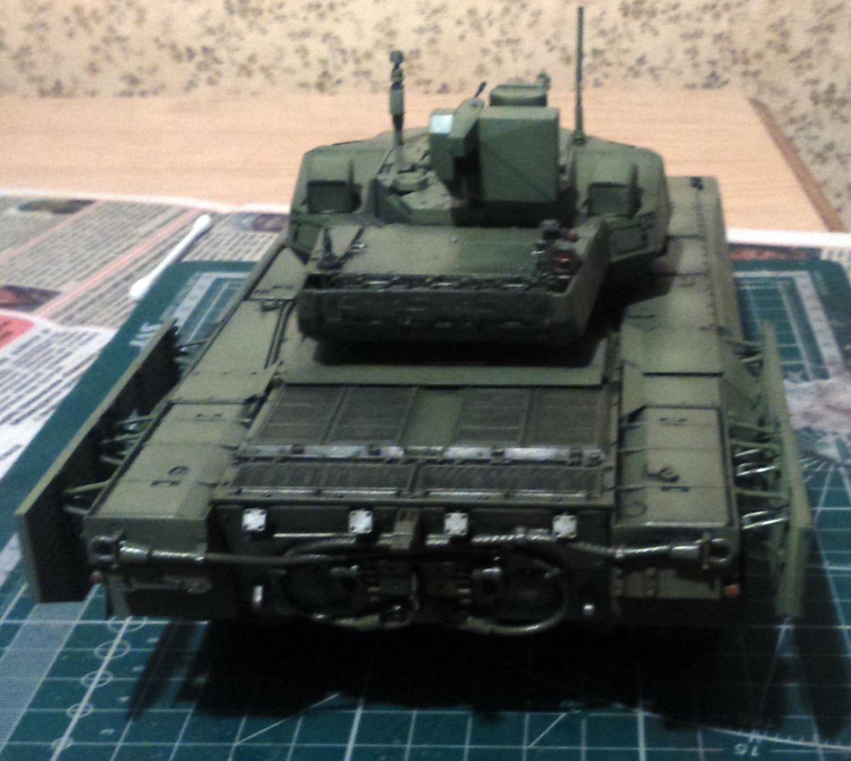 По поводу окраса, - ТАКОМ предлагает для окраски несколько вариантов: http://cdn-frm-eu.wargaming.net/wot/ru/uploads/monthly_02_2016/post-257634-0-73846800-1454765425_thumb.jpg http://cdn-frm-eu.wargaming.net/wot/ru/uploads/monthly_02_2016/post-257634-0-03180600-1454765450_thumb.jpg соответственно с парада Победы и три варианта камуфляжа. По моему ЛИЧНОМУ мнению красить во что-то кроме парадного варианта смысла нет, объяснюсь: тот вариант, что был на красной площади, по некоторым данным, не окончательный. В машинах которые серийно пойдут в армию будут изменения, сильней всего они затронут башню, соответственно как танк Т-14 будет выглядеть окончательно сегодня можно только догадываться. Те же яйца с камуфляжем, каким он будет, - знают только в ГШ МО, да и то скорее всего смутно. По итогу, собирается модель Т-14 с парада 9 мая на Красной площади.