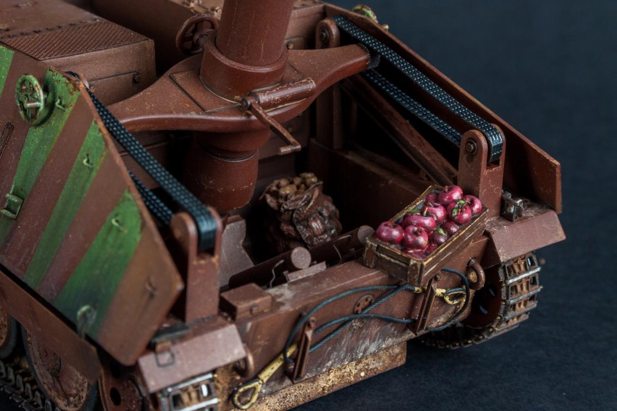 Добрый день! Достался мне сей агрегат собранным в хлам, готовым под покраску, почти. Оторвал всё, что смог. Куча всего заменено, что-то доработано, что-то как есть. Окрас произвольный - как захотелось. В общем то, как и сама машина. Срезал с корпуса имитацию креплений для чего либо. Согнул их из проволоки, используя 4 транспортира, линейку и гнулку для травления. Окраска акрилом AK (тематический набор для грунта), камо акрил AK, масло 502, смывка и фильтры MIG, пигменты ZIP и MIG. В работе использовалось: - Amusing Hobby 35A009 38D 280mm Sturmm?rse - гусеницы Friulmodel ATL-13 - катки Academy и SKP model - болты Masterclub - пластик и прутки Evergreen - фототравление рифленого пола Voyagermodel - фототравление для бруска домкрата E.T.Model - фара Tamiya - лопата, топор и домкрат Dragon - крепления инструмента фототравление Griffon Model - трос Eureka XXL - ключи Aber - фигура Masterbox - яблоки и картошка перелив чей то смолы Приятного просмотра! http://cdn-frm-eu.wargaming.net/wot/ru/uploads/monthly_07_2019/post-258129-0-79965600-1563337634_thumb.jpghttp://cdn-frm-eu.wargaming.net/wot/ru/uploads/monthly_07_2019/post-258129-0-88947600-1563337586_thumb.jpghttp://cdn-frm-eu.wargaming.net/wot/ru/uploads/monthly_07_2019/post-258129-0-33269500-1563337643_thumb.jpghttp://cdn-frm-eu.wargaming.net/wot/ru/uploads/monthly_07_2019/post-258129-0-77252100-1563337624_thumb.jpghttp://cdn-frm-eu.wargaming.net/wot/ru/uploads/monthly_07_2019/post-258129-0-18639100-1563337618_thumb.jpghttp://cdn-frm-eu.wargaming.net/wot/ru/uploads/monthly_07_2019/post-258129-0-15441300-1563337650_thumb.jpghttp://cdn-frm-eu.wargaming.net/wot/ru/uploads/monthly_07_2019/post-258129-0-17291000-1563337678_thumb.jpghttp://cdn-frm-eu.wargaming.net/wot/ru/uploads/monthly_07_2019/post-258129-0-19381300-1563337685_thumb.jpghttp://cdn-frm-eu.wargaming.net/wot/ru/uploads/monthly_07_2019/post-258129-0-85989700-1563337670_thumb.jpghttp://cdn-frm-eu.wargaming.net/wot/ru/uploads/monthly_07_2019/post-258129-0-65688000-1563337691_thumb.jpghttp://cdn-frm-eu.wargaming.net/wot/ru/uploads/monthly_07_2019/post-258129-0-92015800-1563337663_thumb.jpghttp://cdn-frm-eu.wargaming.net/wot/ru/uploads/monthly_07_2019/post-258129-0-41742100-1563337656_thumb.jpghttp://cdn-frm-eu.wargaming.net/wot/ru/uploads/monthly_07_2019/post-258129-0-36569600-1563337706_thumb.jpghttp://cdn-frm-eu.wargaming.net/wot/ru/uploads/monthly_07_2019/post-258129-0-19641800-1563337715_thumb.jpghttp://cdn-frm-eu.wargaming.net/wot/ru/uploads/monthly_07_2019/post-258129-0-04439200-1563337723_thumb.jpghttp://cdn-frm-eu.wargaming.net/wot/ru/uploads/monthly_07_2019/post-258129-0-95094100-1563337732_thumb.jpghttp://cdn-frm-eu.wargaming.net/wot/ru/uploads/monthly_07_2019/post-258129-0-87486600-1563337741_thumb.jpghttp://cdn-frm-eu.wargaming.net/wot/ru/uploads/monthly_07_2019/post-258129-0-55235900-1563337748_thumb.jpghttp://cdn-frm-eu.wargaming.net/wot/ru/uploads/monthly_07_2019/post-258129-0-77965400-1563337755_thumb.jpghttp://cdn-frm-eu.wargaming.net/wot/ru/uploads/monthly_07_2019/post-258129-0-30158800-1563337764_thumb.jpghttp://cdn-frm-eu.wargaming.net/wot/ru/uploads/monthly_07_2019/post-258129-0-39389100-1563337771_thumb.jpghttp://cdn-frm-eu.wargaming.net/wot/ru/uploads/monthly_07_2019/post-258129-0-04945800-1563337783_thumb.jpghttp://cdn-frm-eu.wargaming.net/wot/ru/uploads/monthly_07_2019/post-258129-0-76811900-1563337776_thumb.jpghttp://cdn-frm-eu.wargaming.net/wot/ru/uploads/monthly_07_2019/post-258129-0-20436400-1563337788_thumb.jpghttp://cdn-frm-eu.wargaming.net/wot/ru/uploads/monthly_07_2019/post-258129-0-78209200-1563337798_thumb.jpghttp://cdn-frm-eu.wargaming.net/wot/ru/uploads/monthly_07_2019/post-258129-0-24331700-1563337793_thumb.jpghttp://cdn-frm-eu.wargaming.net/wot/ru/uploads/monthly_07_2019/post-258129-0-85198500-1563337812_thumb.jpghttp://cdn-frm-eu.wargaming.net/wot/ru/uploads/monthly_07_2019/post-258129-0-79272500-1563337805_thumb.jpghttp://cdn-frm-eu.wargaming.net/wot/ru/uploads/monthly_07_2019/post-258129-0-54597300-1563337818_thumb.jpg